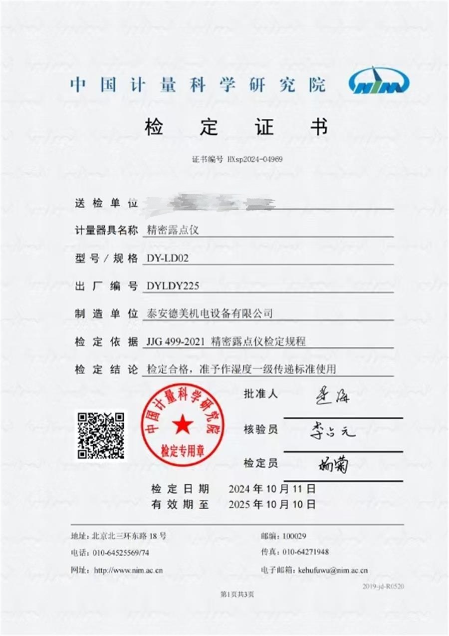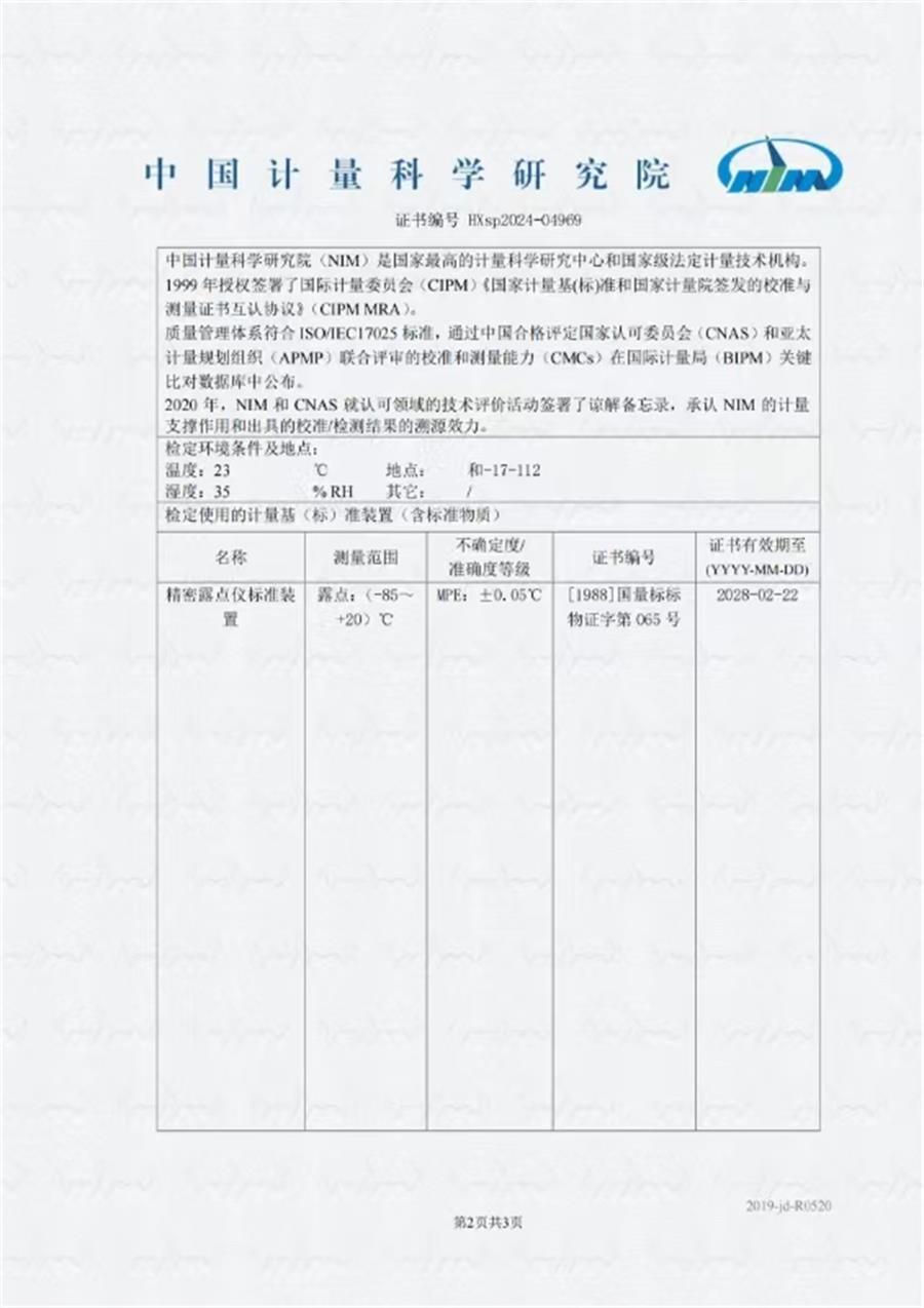 露點儀檢定證書 2024-11-6 本文被閱讀 6158 次