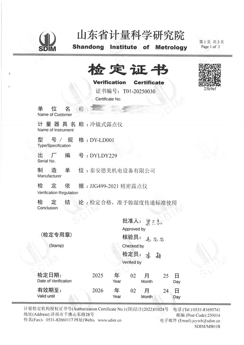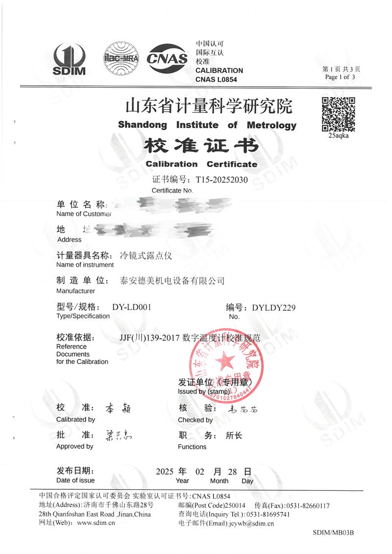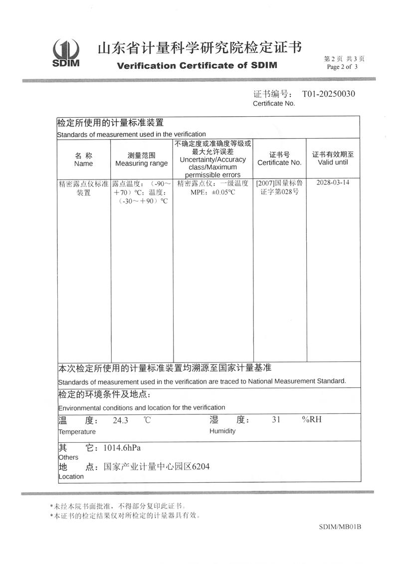 露點儀檢定、校準證書 2025-3-8 本文被閱讀 3659 次