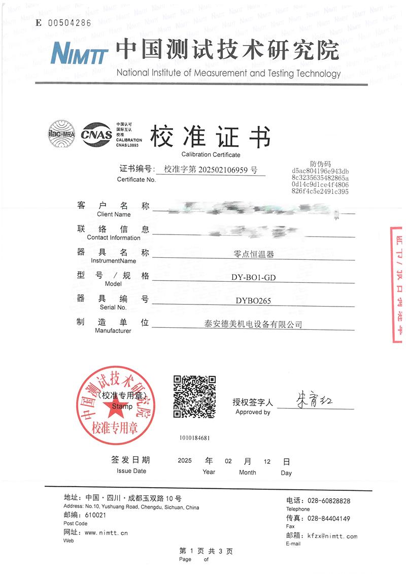 零點恒溫器校準證書 2025-3-12 本文被閱讀 2849 次