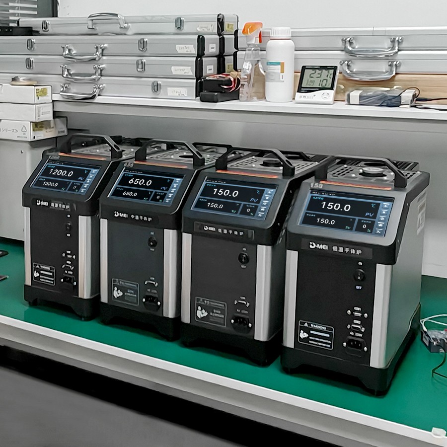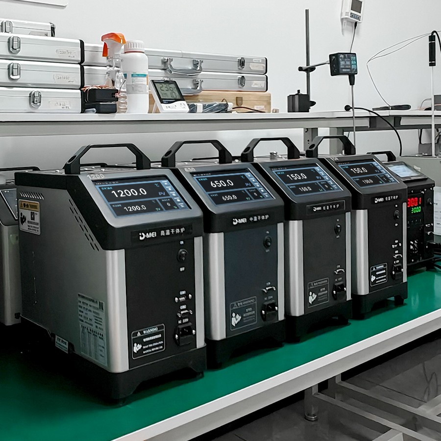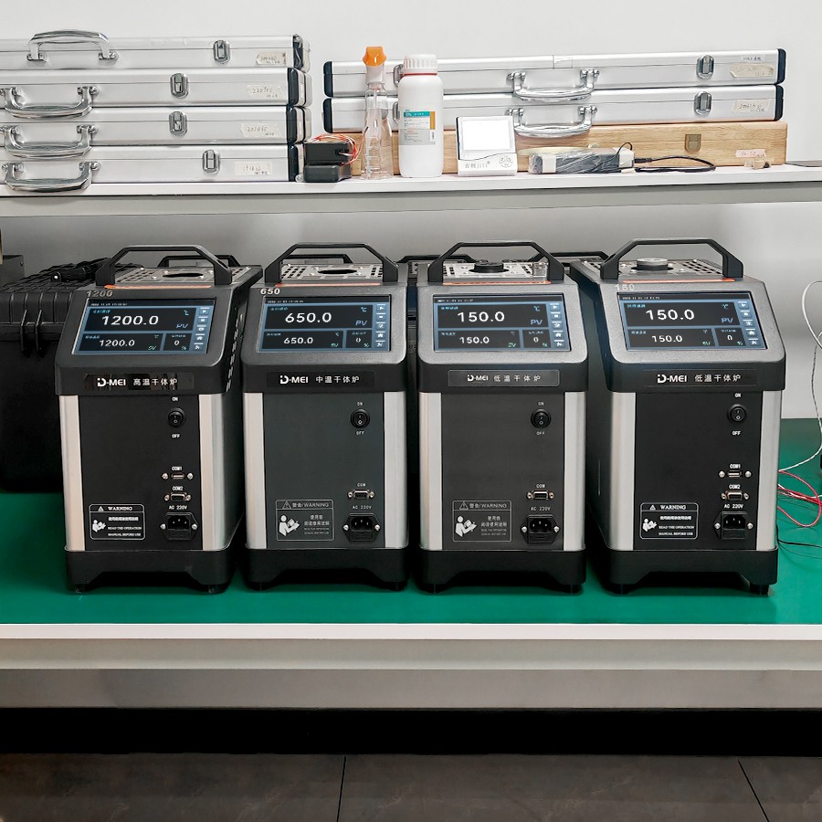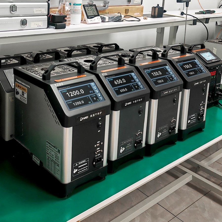干體爐能夠提供一個穩(wěn) 定的、均勻的、準(zhǔn)確的溫度環(huán)境(溫場),提供了類似于恒溫槽(液浴槽)的性能,但是干體爐卻攜帶方便,不需要放置液體。干體爐到達(dá)預(yù)定溫度點并且溫度穩(wěn) 定的時間比恒溫槽快5到10倍,這樣可以大大節(jié)省校準(zhǔn)人員的時間,提高溫度檢定速度。干體爐的便攜性使其能夠到現(xiàn)場進(jìn)行校準(zhǔn)工作,從而解決了恒溫槽在運輸移動上的困難。 通過干體爐可以方便地校準(zhǔn)溫度傳感器、水銀溫度計、膨脹式溫度計、熱電偶、熱電阻、等溫度傳感器。