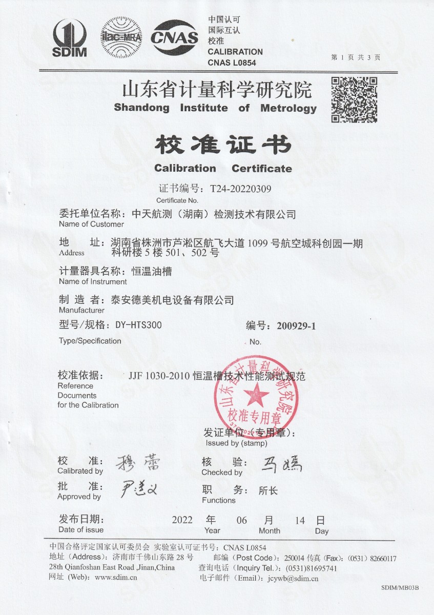 | 上一條:中航華東光電有限公司-高溫面源黑體爐 | 下一條:便攜式溫濕度檢定箱(-10-60℃)校準(zhǔn)證書 |