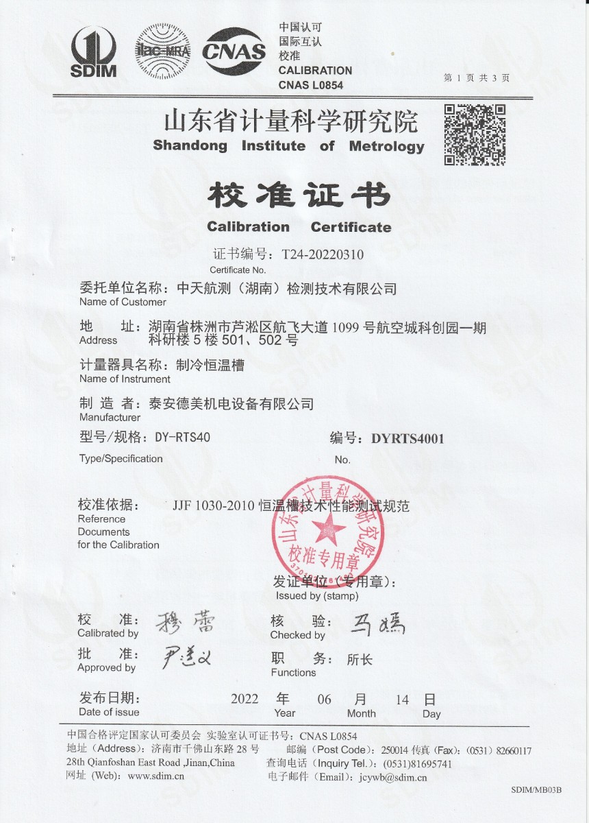 | 上一條:中天航測(湖南)檢測技術(shù)有限公司-恒溫油槽 | 下一條:便攜式干體爐(-30-150℃)校準(zhǔn)證書 |