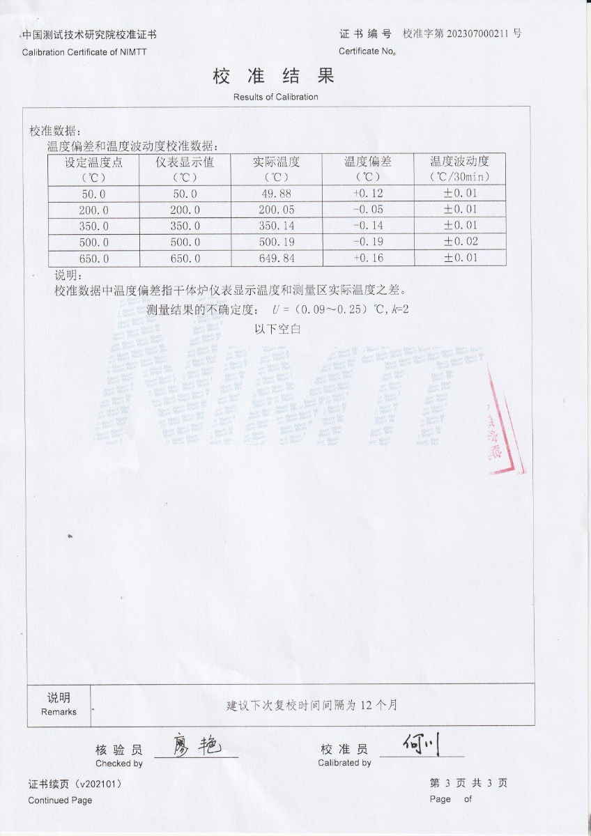 上一條:湖南京麒生物科技有限公司-制冷恒溫槽 | 下一條:便攜式干體爐(-30-150℃)校準(zhǔn)證書(shū) |