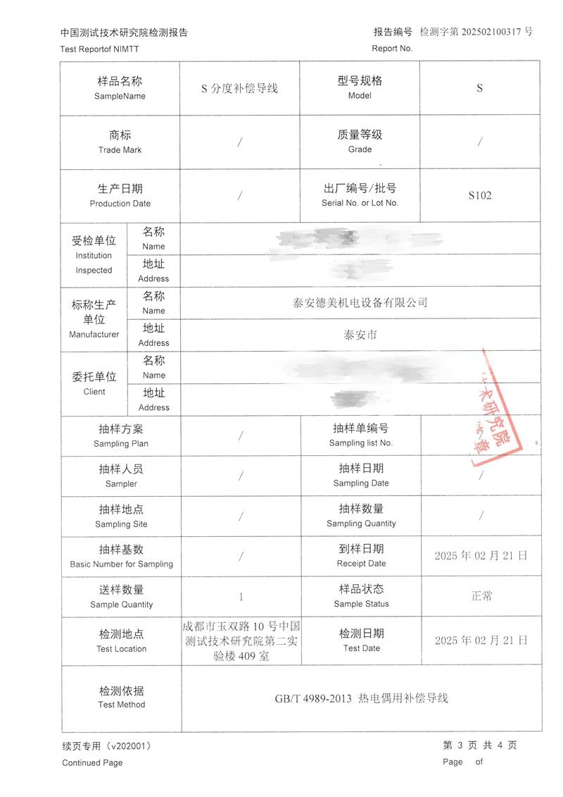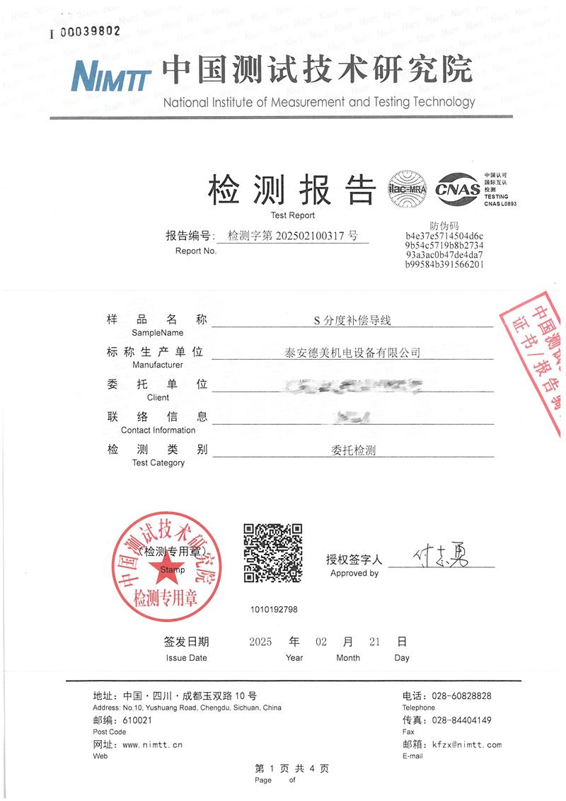 S分度補償導(dǎo)線檢測報告 2025-2-25 本文被閱讀 4354 次
