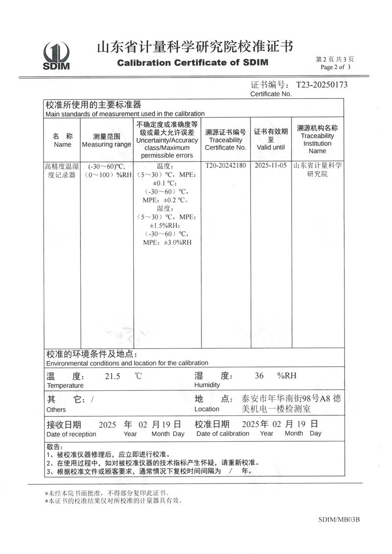 溫濕度檢定箱(-5~65℃)校準證書 2025-2-26 本文被閱讀 4582 次