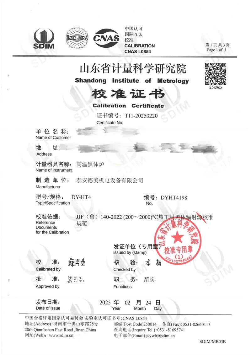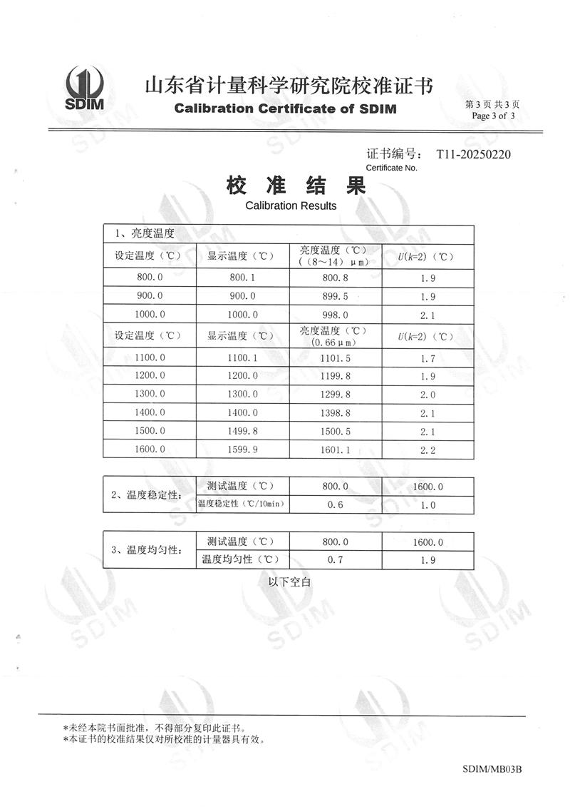 高溫黑體爐(800~1600℃)校準(zhǔn)證書 2025-2-26 本文被閱讀 4666 次