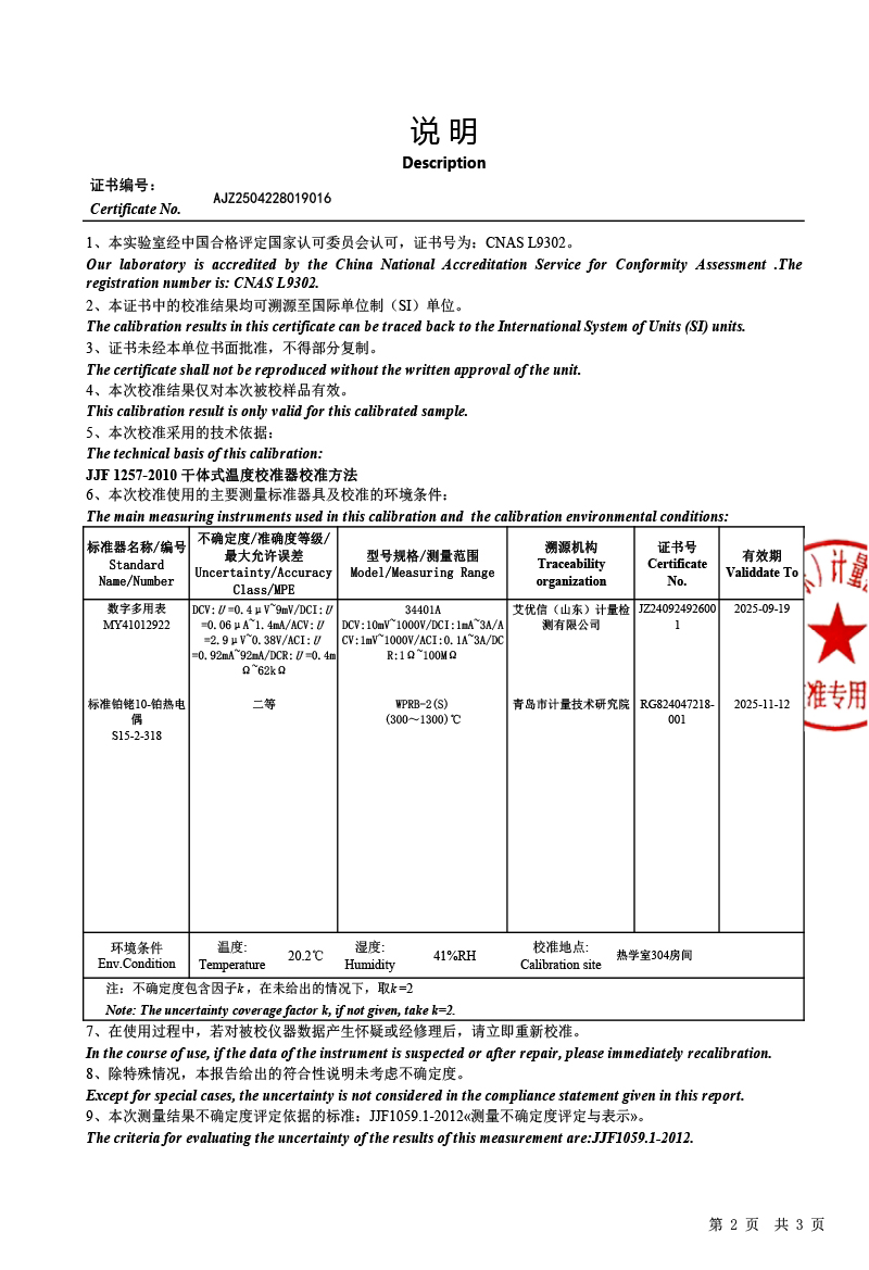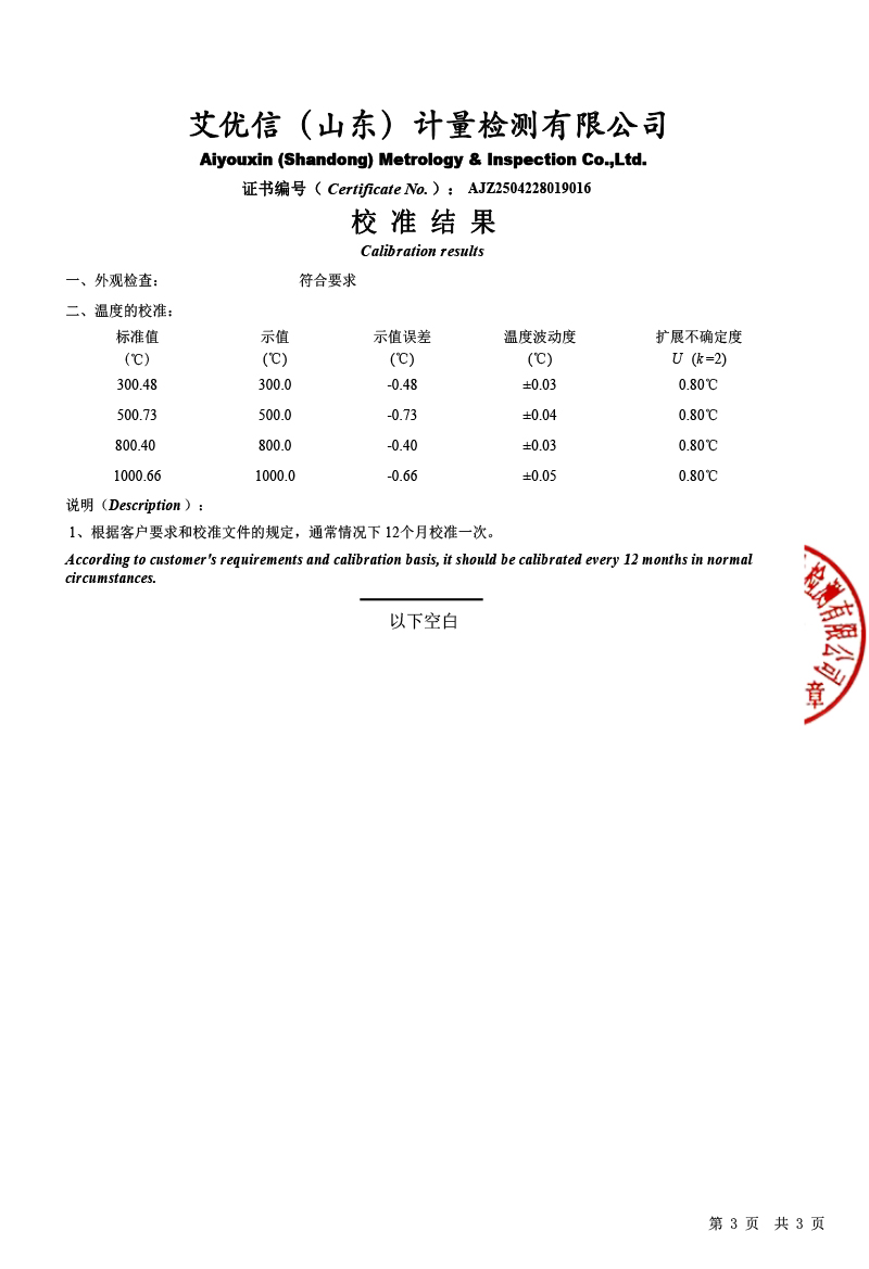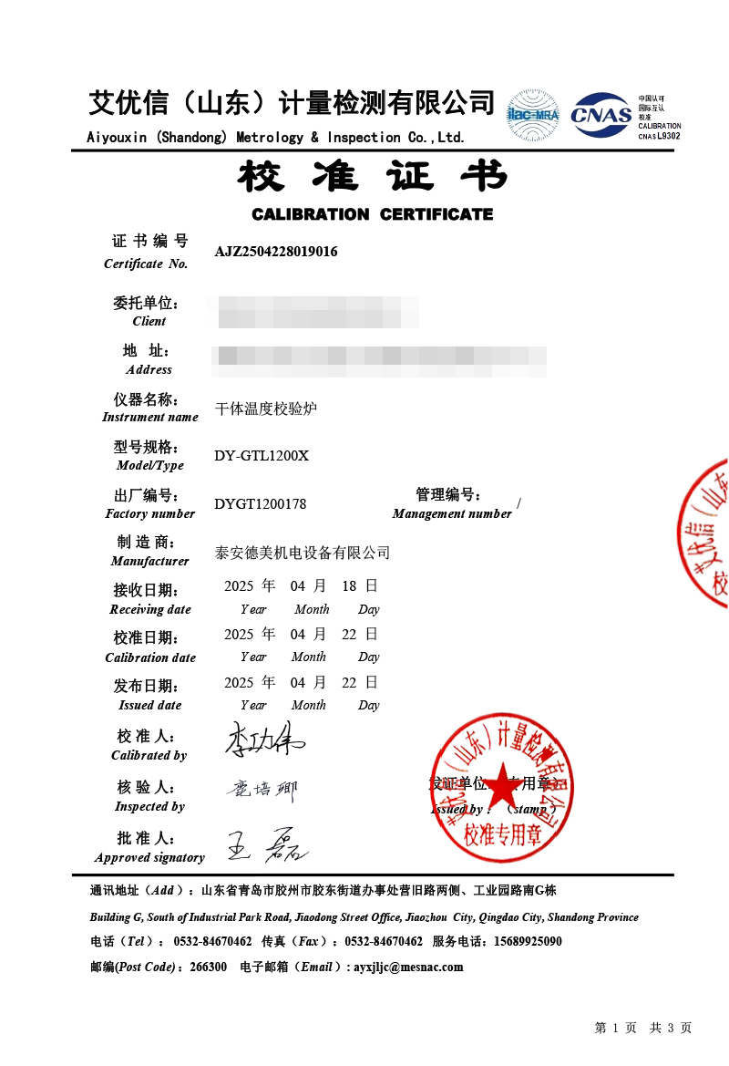 上一條:高精度數(shù)字溫度計(jì)(-50-450℃)校準(zhǔn)證書 | 下一條:便攜式干體爐(-30-150℃)校準(zhǔn)證書 |