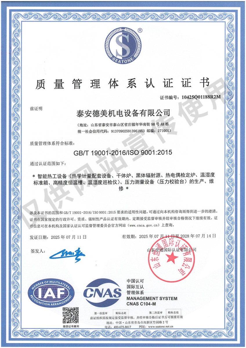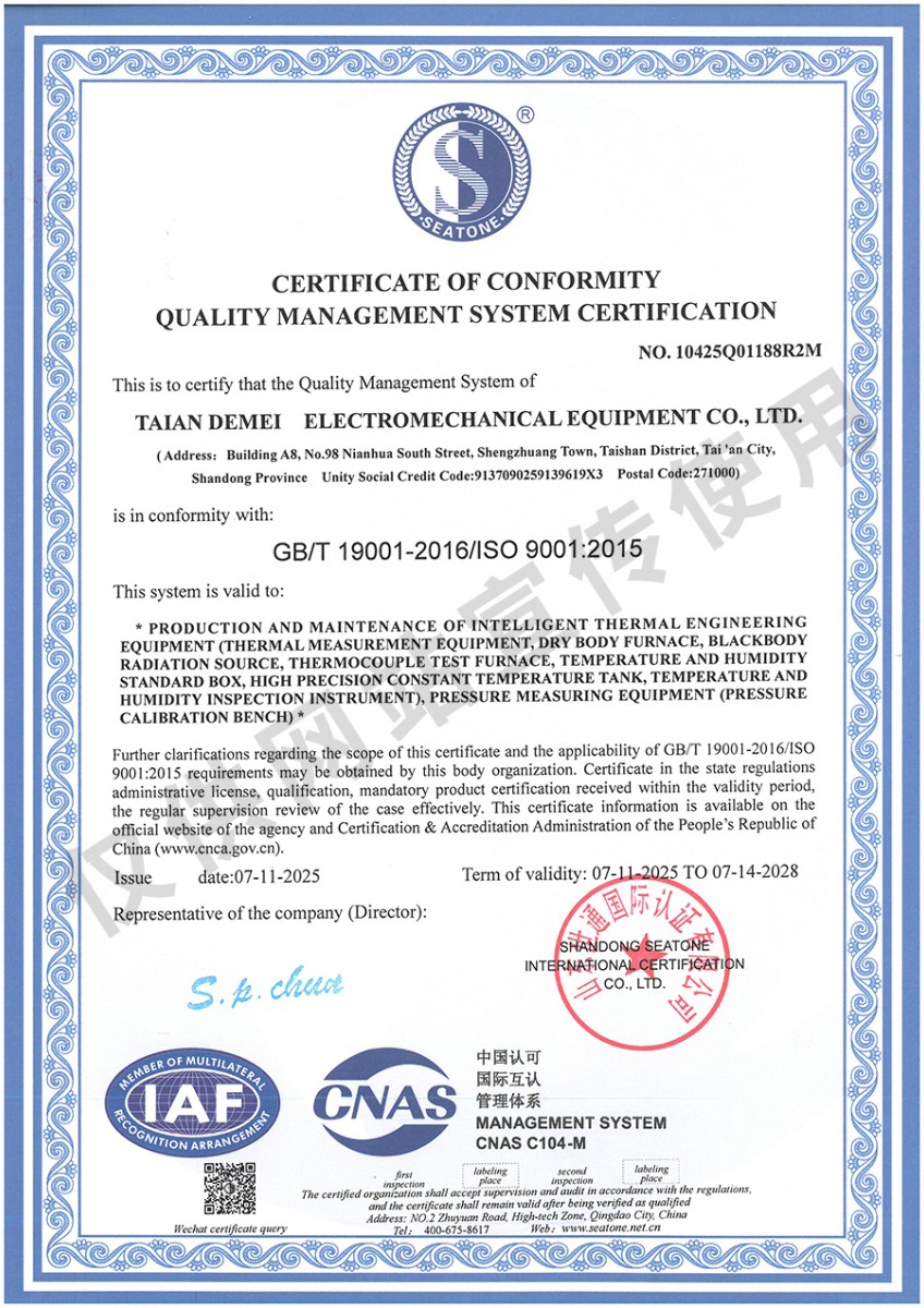 上一條:熱電偶檢定爐(300-1200℃)校準(zhǔn)證書 | 下一條:超低溫面源黑體爐(-40-80℃)校準(zhǔn)證書 |