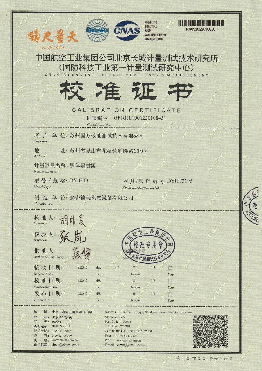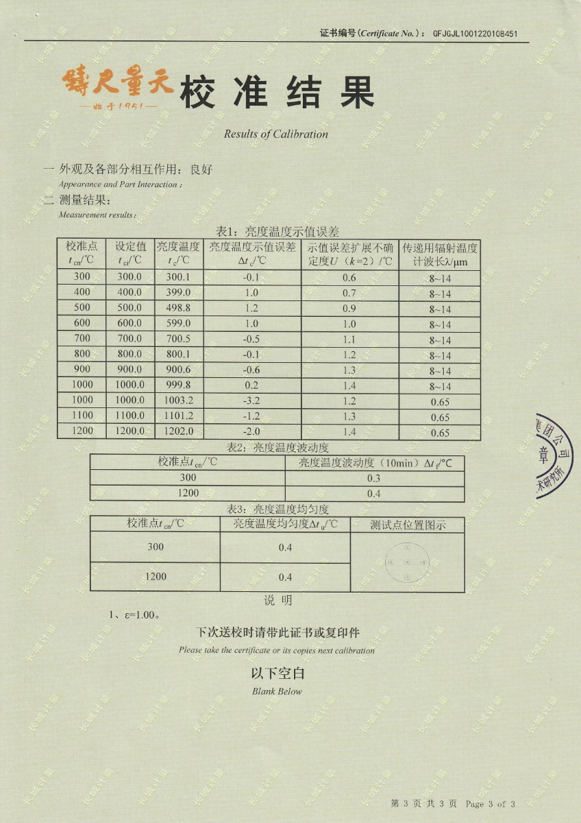 上一條:青島加侖檢測(cè)技術(shù)服務(wù)有限公司-黑體輻射源 | 下一條:超低溫面源黑體爐(-40-80℃)校準(zhǔn)證書(shū) |