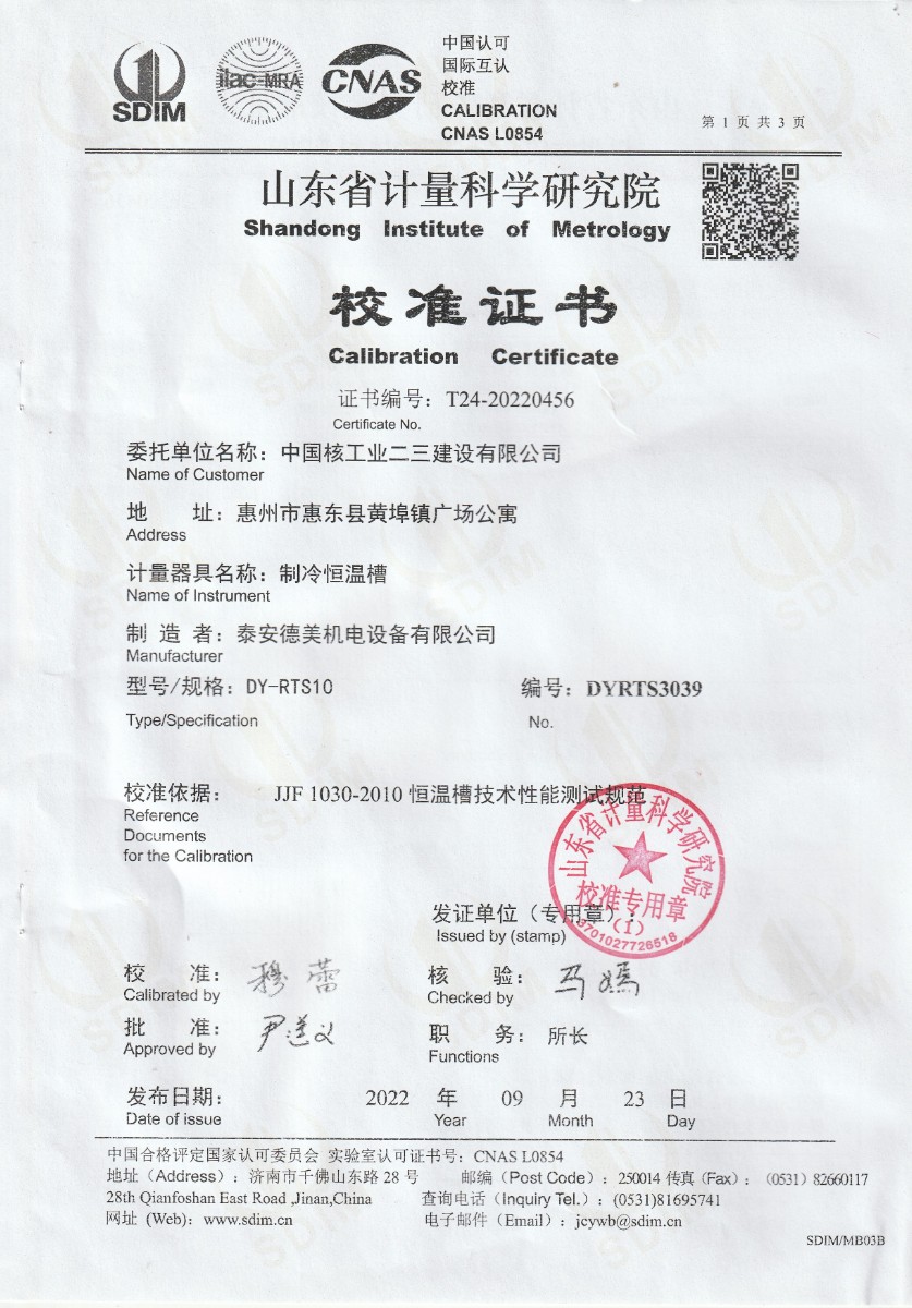 | 上一條:中國核工業(yè)二三建設(shè)有限公司-油槽 | 下一條:便攜式干體爐(-30-150℃)校準(zhǔn)證書 |