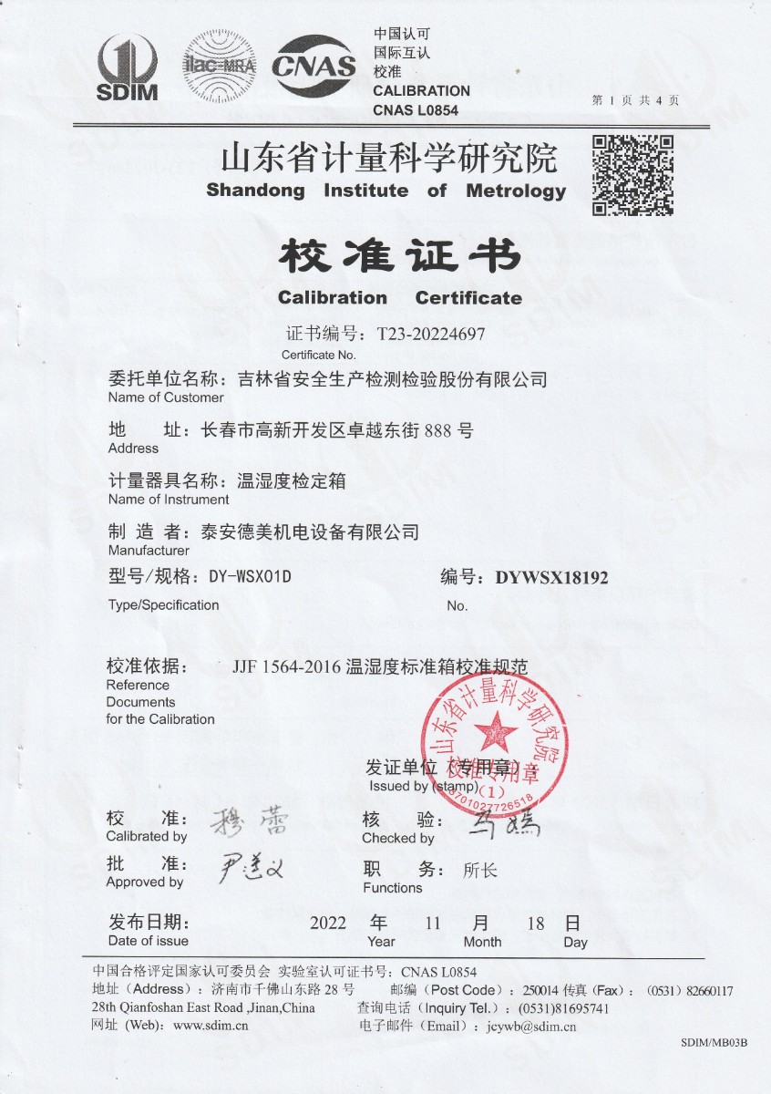 上一條:海安橡膠集團(tuán)股份有限公司 干體爐 校準(zhǔn)證書(shū) | 下一條:便攜式干體爐(-30-150℃)校準(zhǔn)證書(shū) |