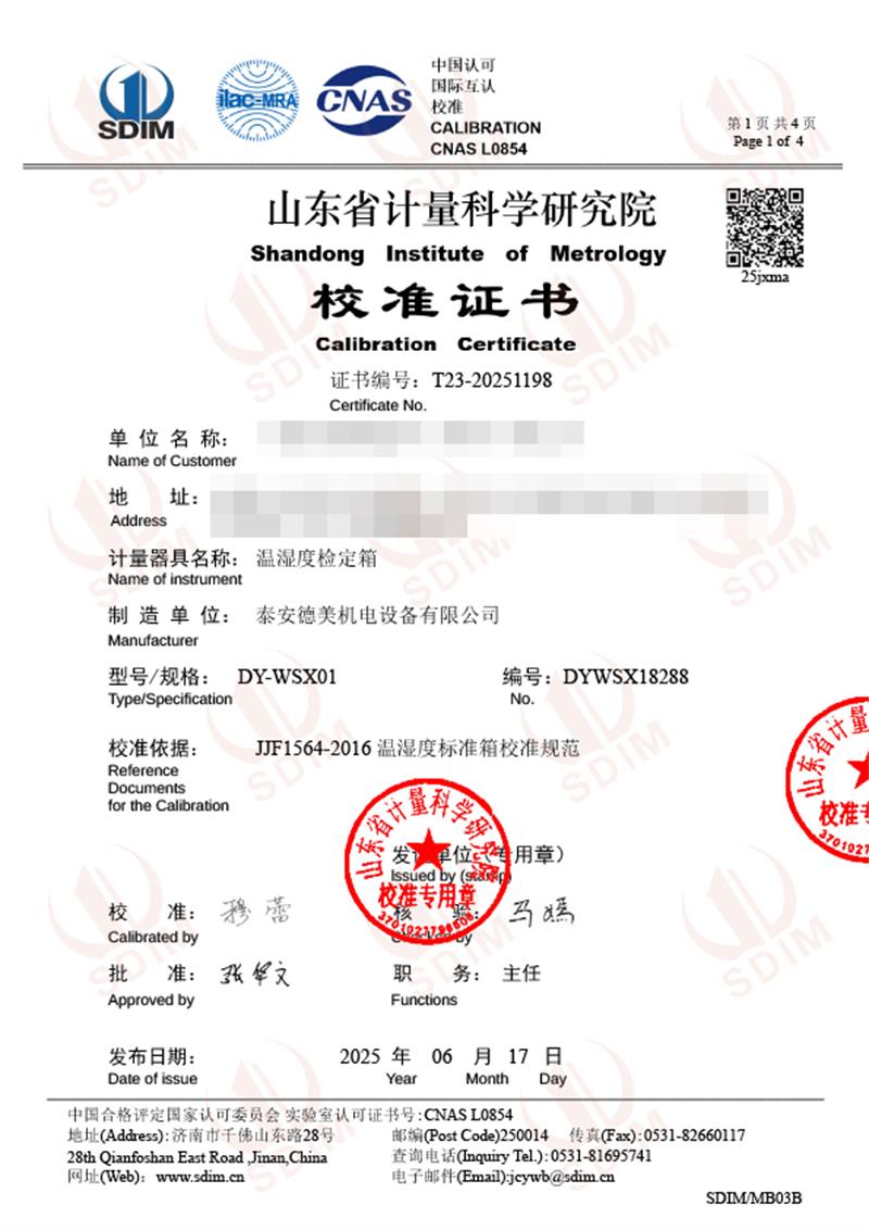 溫濕度檢定箱(-5-65℃)校準證書 2025-6-20 本文被閱讀 2724 次