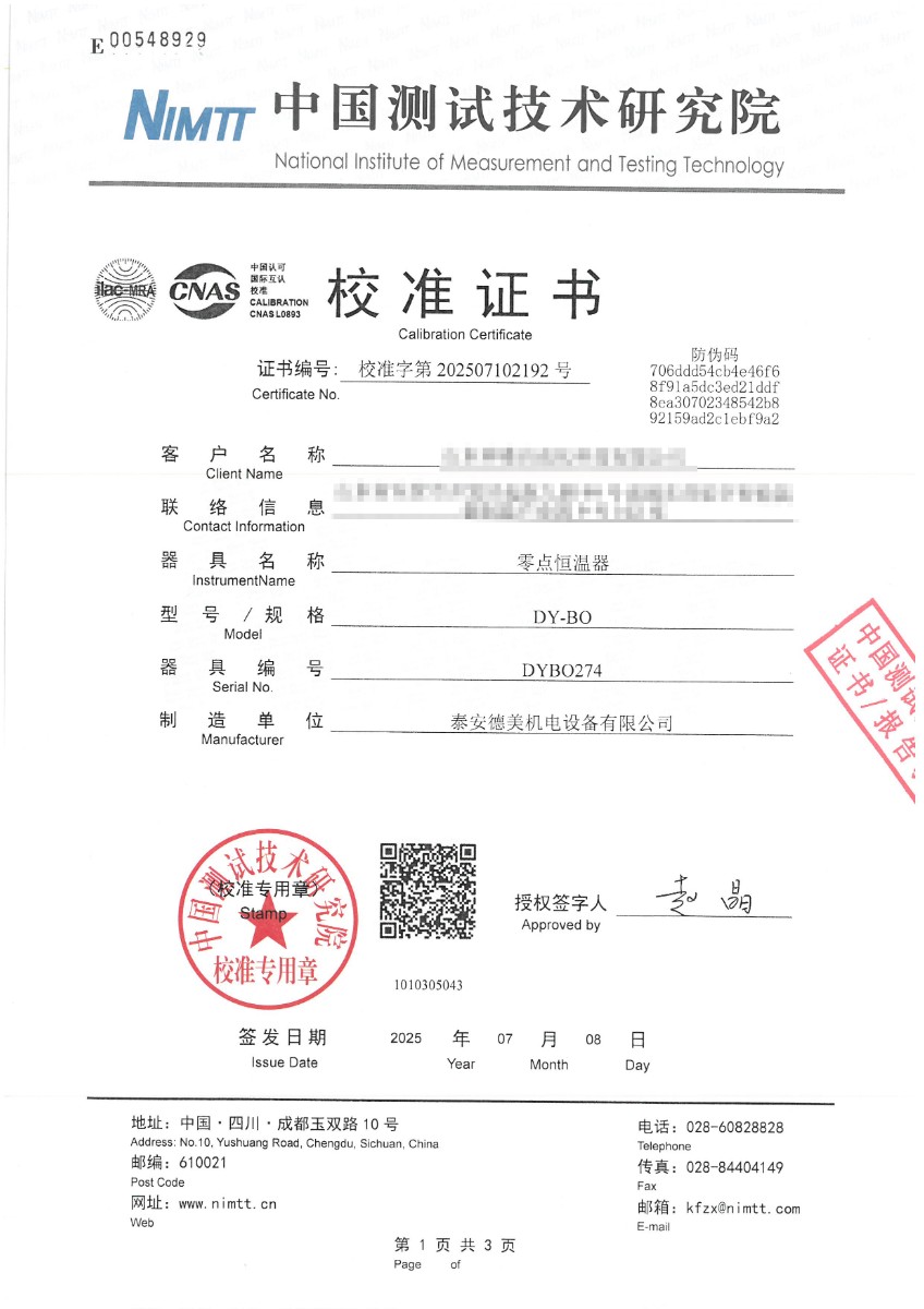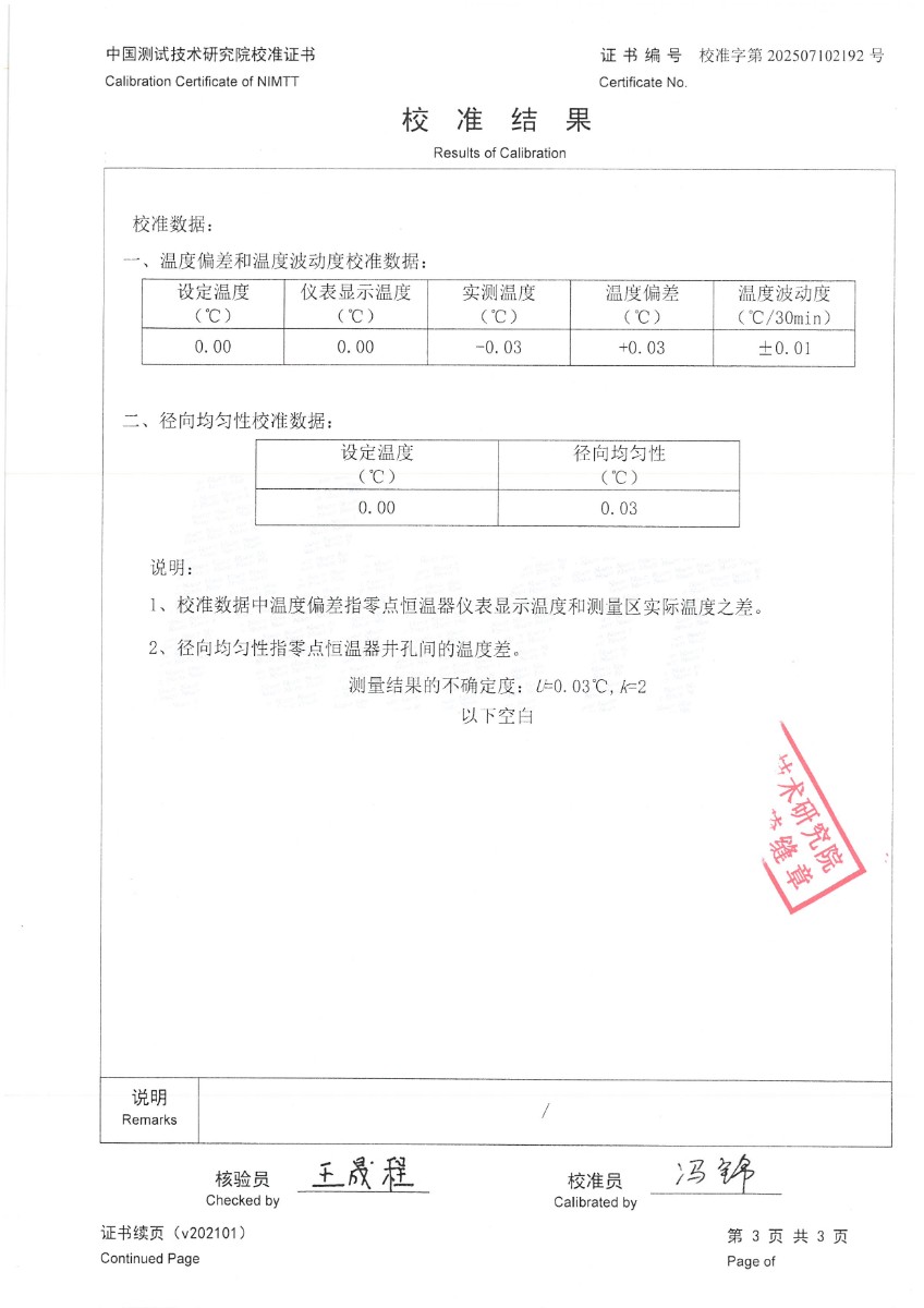 上一條:熱電偶補(bǔ)償導(dǎo)線(N分度)校準(zhǔn)證書(shū) | 下一條:超低溫面源黑體爐(-40-80℃)校準(zhǔn)證書(shū) |
