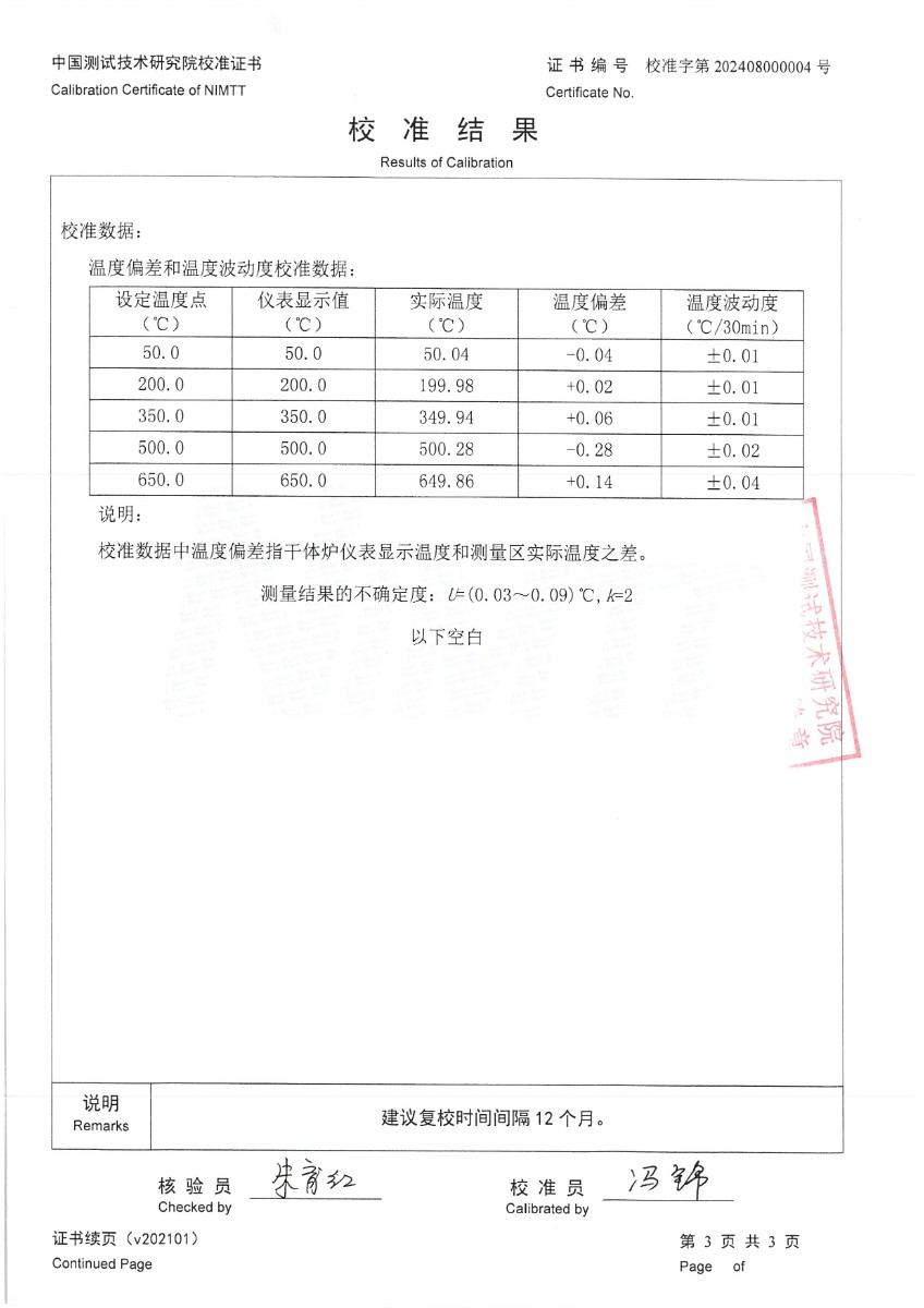 上一條:干體爐300(室溫+5℃~650℃)校準(zhǔn)證書 | 下一條:超低溫面源黑體爐(-40-80℃)校準(zhǔn)證書 |
