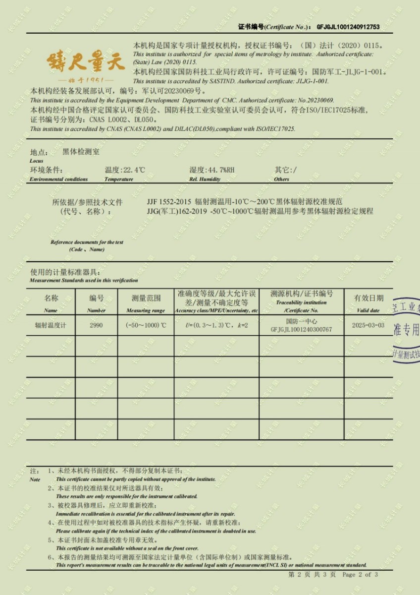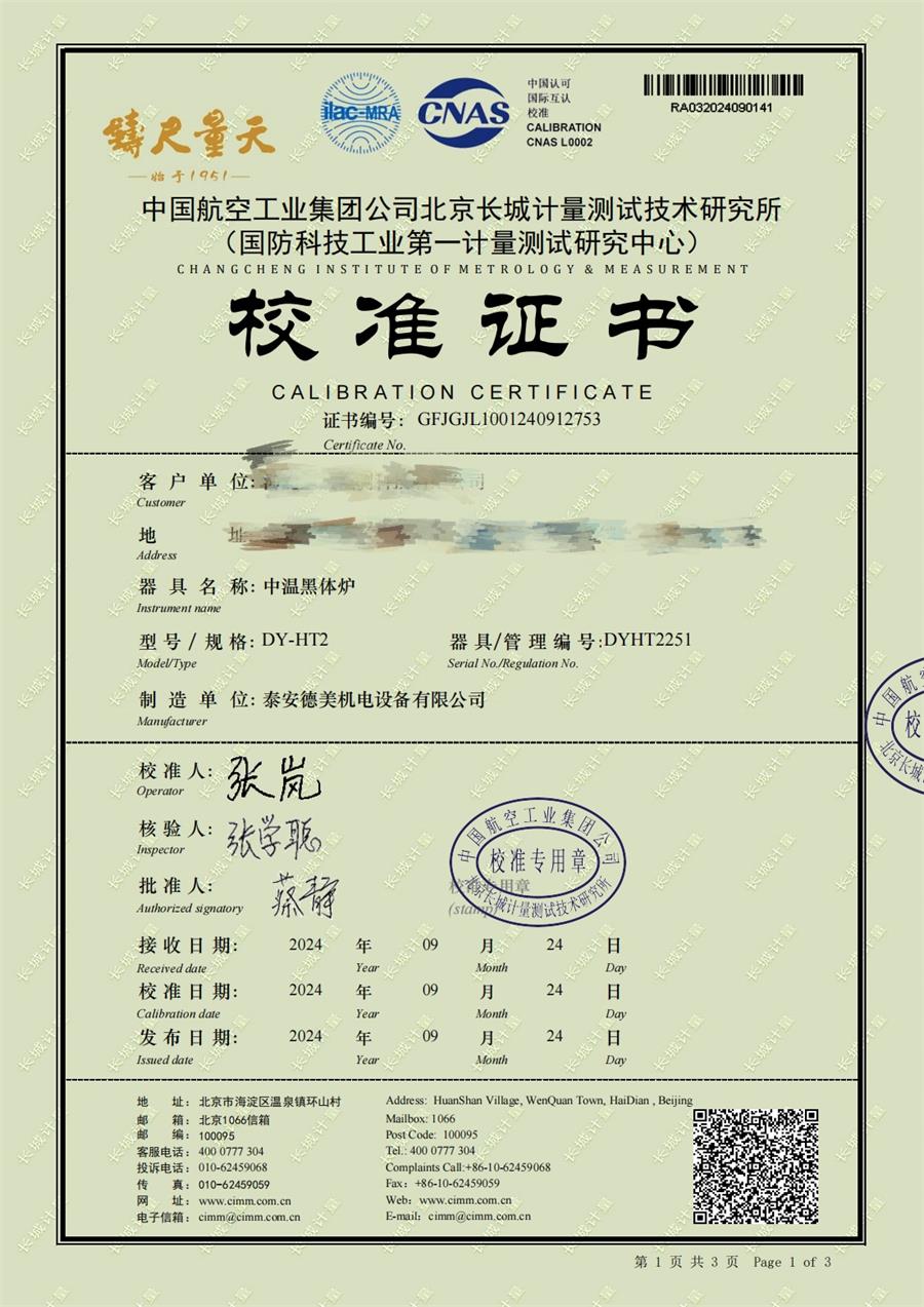 中溫黑體爐(50-500℃)校準(zhǔn)證書 2024-10-17 本文被閱讀 5338 次