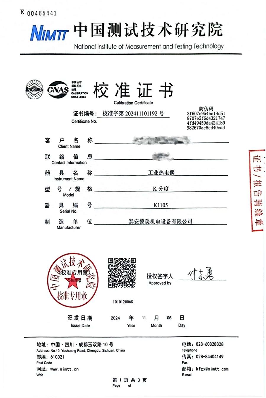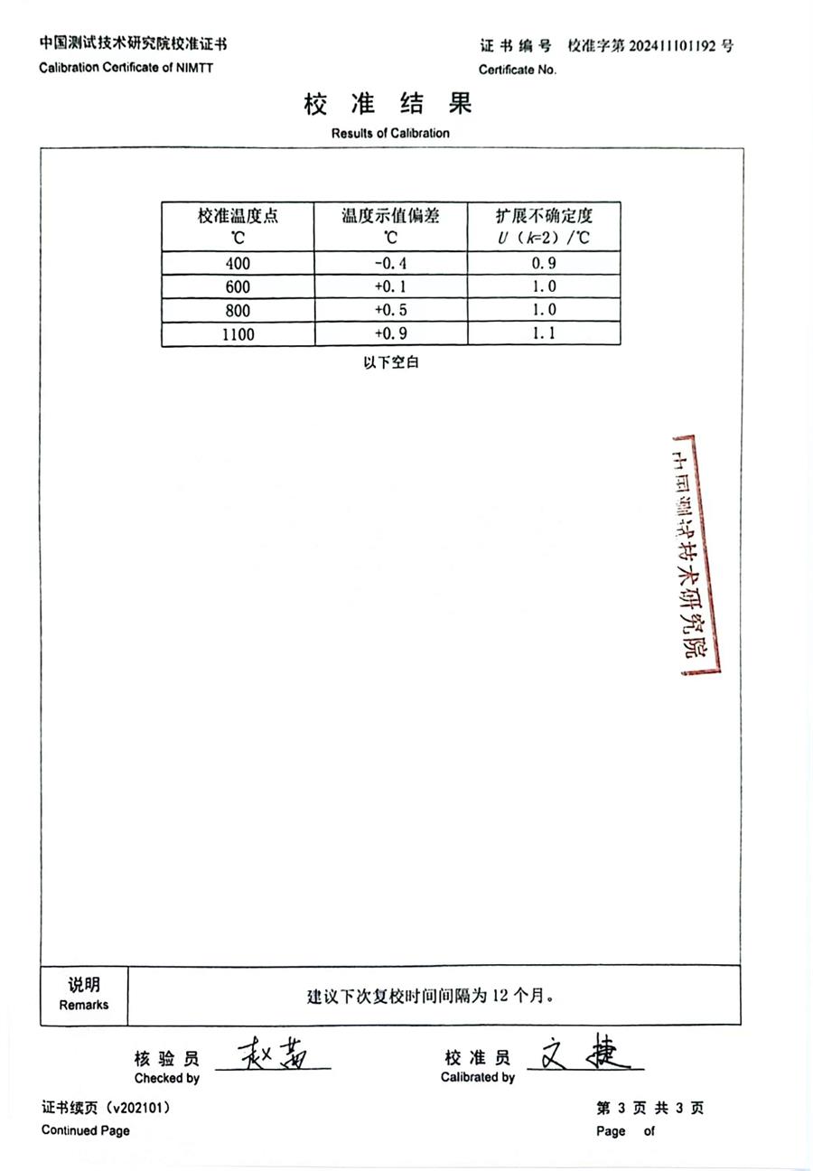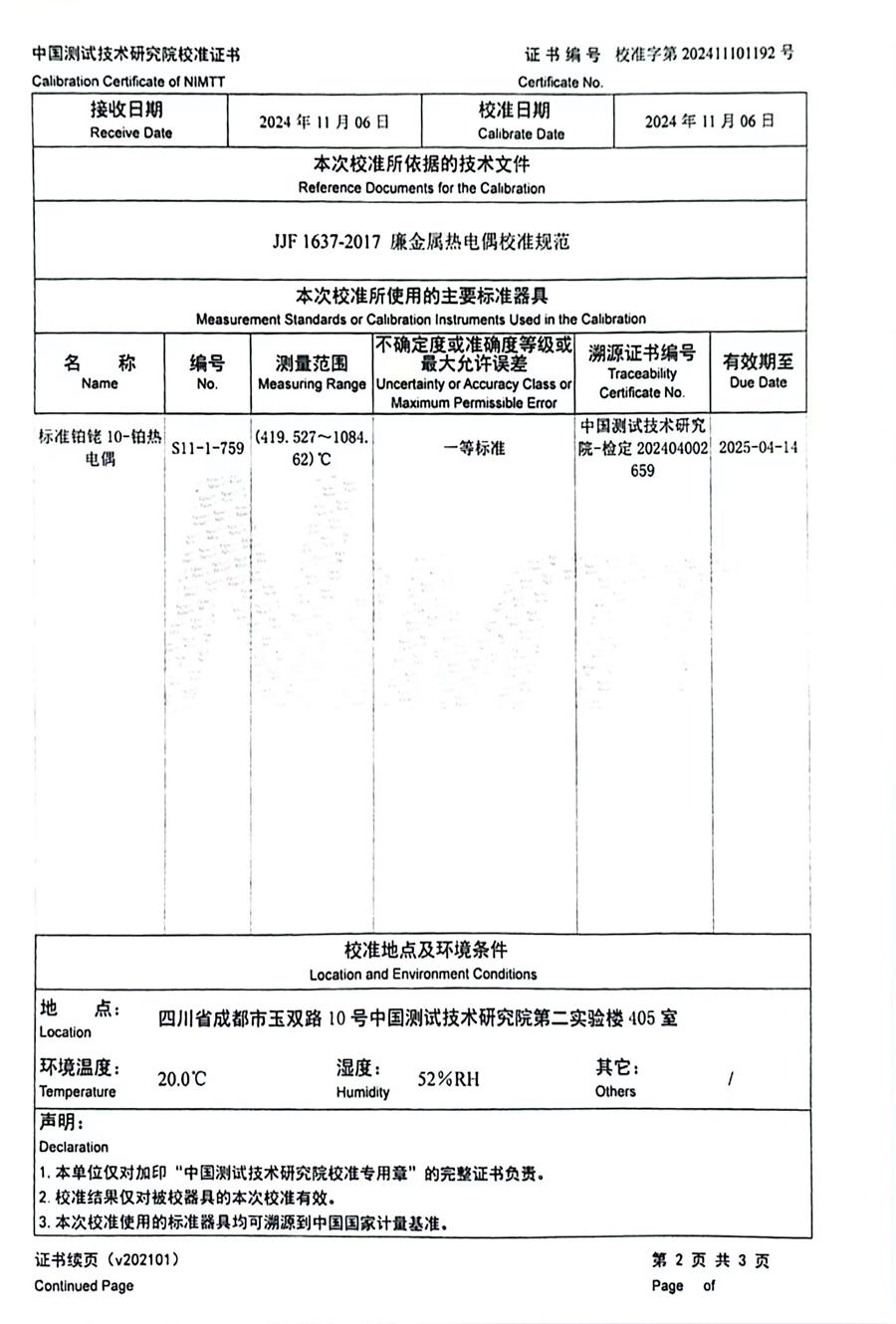 K分度熱電偶校準(zhǔn)證書 2024-11-9 本文被閱讀 6814 次