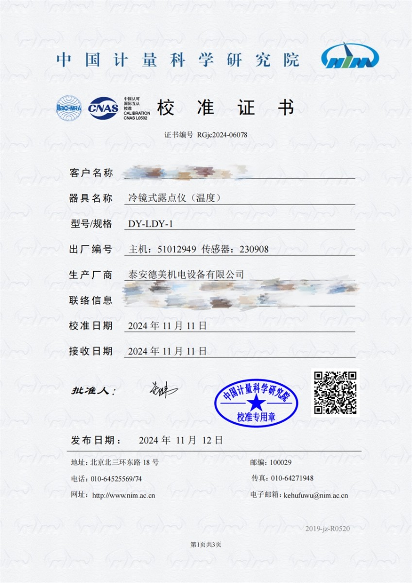 冷鏡式露點儀校準證書 2024-11-21 本文被閱讀 7031 次