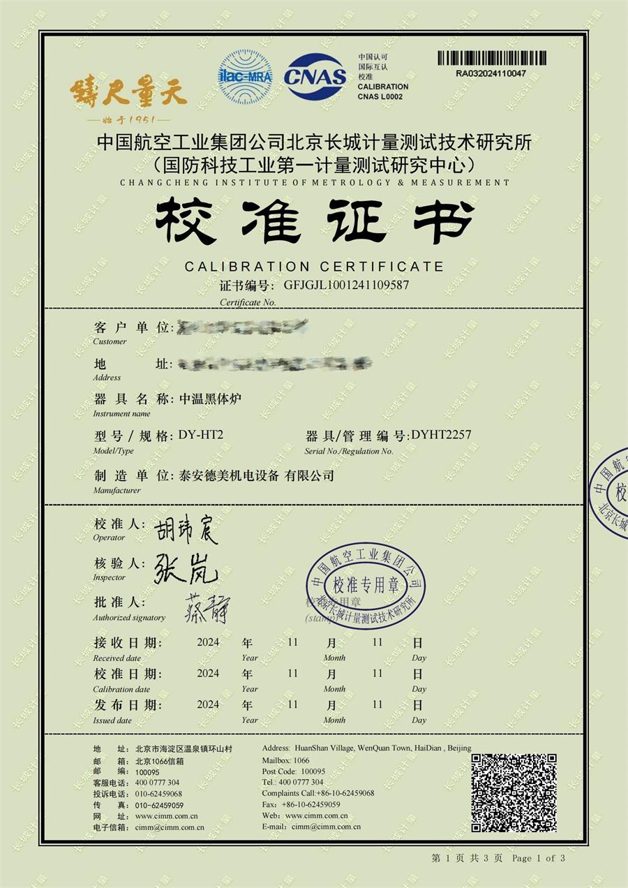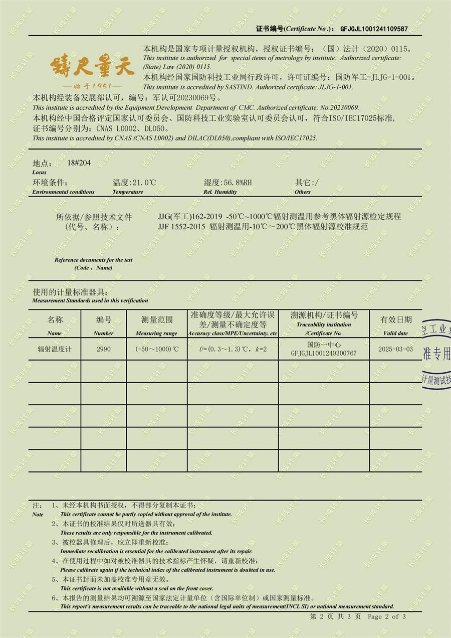 上一條:面源黑體爐校準證書下一條:超低溫面源黑體爐(-40-80℃)校準證書