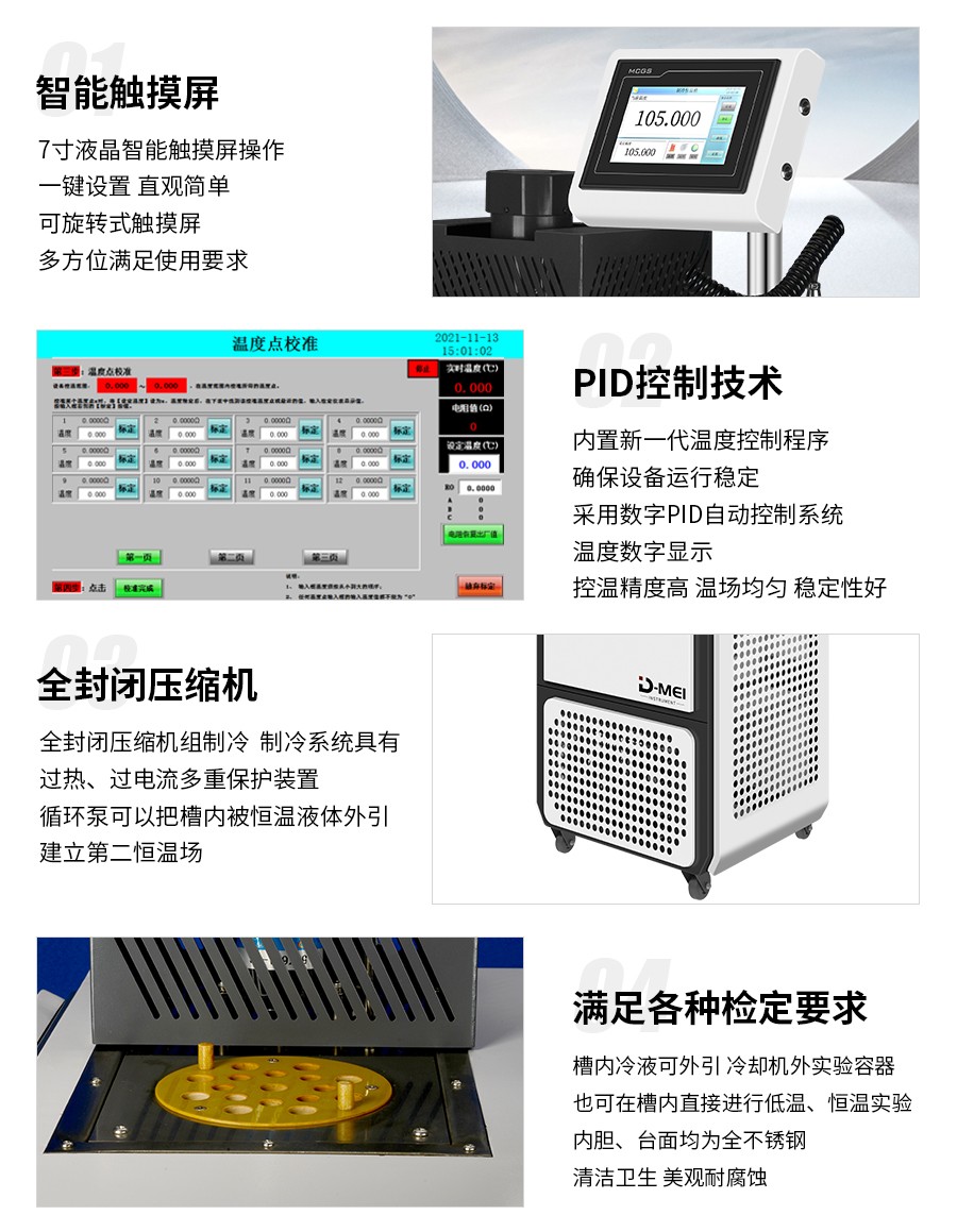 DY-RTS40制冷恒溫槽(-40℃/-30℃~105℃)是高精度自控式溫度檢定設(shè)備,控溫精度高,溫場均勻,穩(wěn)定性好,操作方便,采用全封閉壓縮機制冷系統(tǒng),外殼和內(nèi)膽都采用全不銹鋼材料制造,產(chǎn)品供計量部門作一、二等標(biāo)準(zhǔn)水銀溫度計,貝克曼溫度計。工業(yè)鉑熱電阻,標(biāo)準(zhǔn)銅-康銅熱電偶檢定之用,也可作高精度熱、冷源供生產(chǎn)、科研使用。制冷恒溫槽是一種高精度自控式數(shù)顯溫度檢定裝置,它具有溫度穩(wěn)定性好,溫場均勻,控溫精度高等特點。制冷系統(tǒng)采用全封閉制冷機,具有噪音低、可靠性好、壽命長。數(shù)顯溫控儀按PID調(diào)節(jié)規(guī)律實現(xiàn)溫度自動控制,結(jié)構(gòu)緊湊、操作方便、槽溫讀數(shù)直觀。適用于各計量、生化、石油、氣象、能源、環(huán)保、醫(yī)藥等部門及生產(chǎn)溫度計、控溫器等廠家進行物理參數(shù)的檢測,并可為其他實驗研究工作提供恒溫源。
