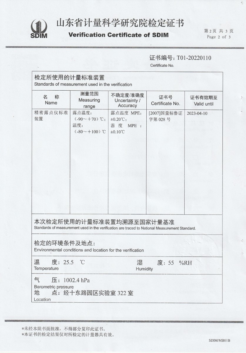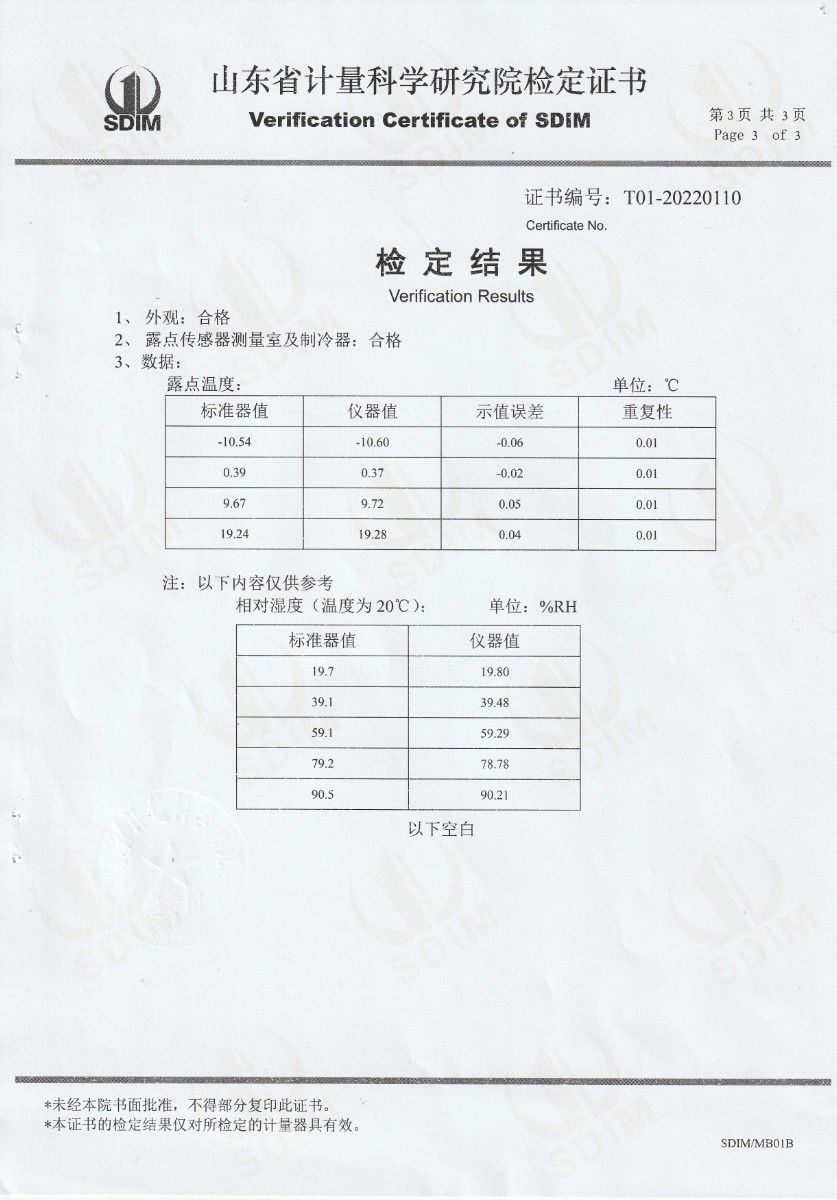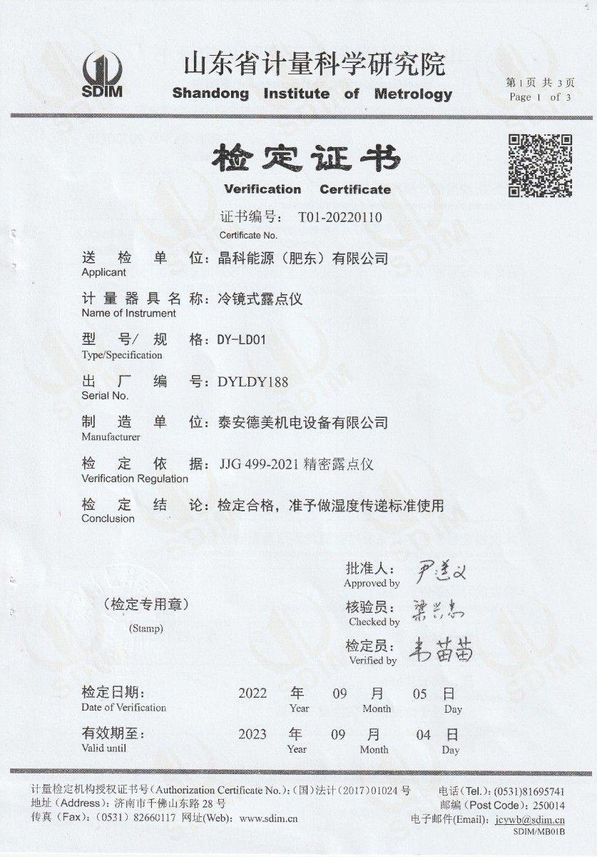 晶科能源(肥東)有限公司-冷鏡式露點儀檢定證書 2022-9-26 本文被閱讀 15078 次