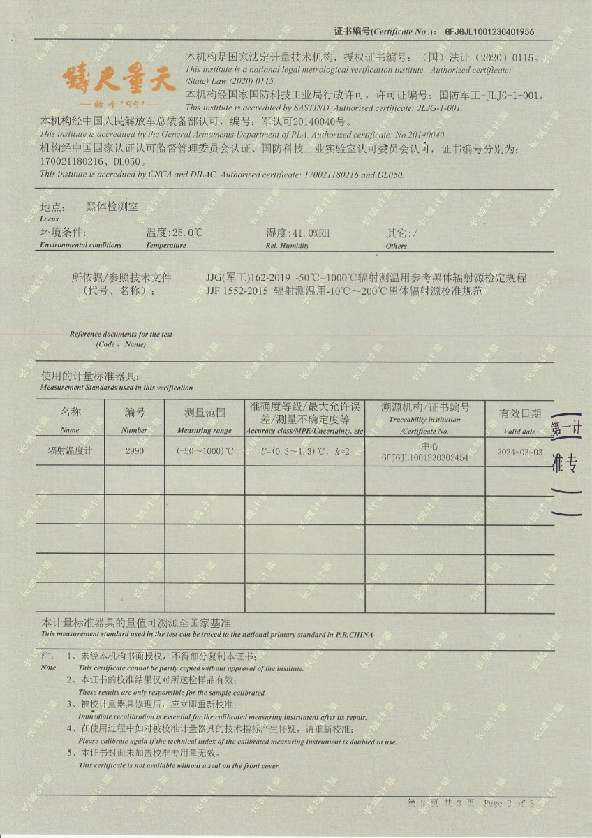 上一條:中航工程集成設(shè)備有限公司 黑體輻射源 校準(zhǔn)證書 (2)下一條:超低溫面源黑體爐(-40-80℃)校準(zhǔn)證書