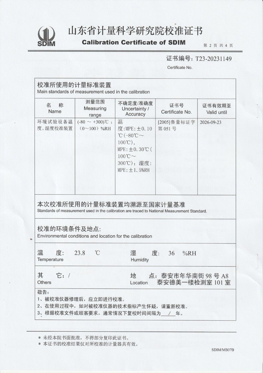 上一條:鉑熱電偶S23-7081檢定證書(shū)下一條:超低溫面源黑體爐(-40-80℃)校準(zhǔn)證書(shū)
