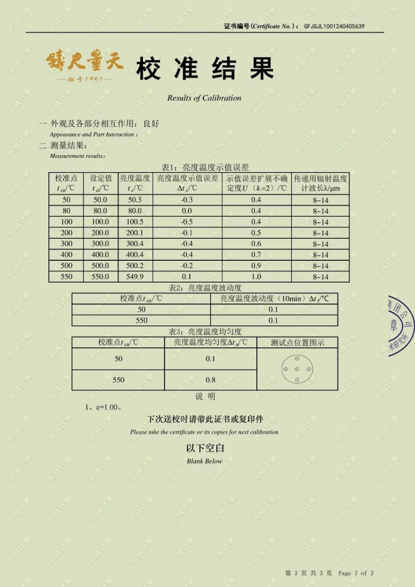 上一條:小尺寸高精度中溫黑體校準(zhǔn)證書(shū) | 下一條:超低溫面源黑體爐(-40-80℃)校準(zhǔn)證書(shū) |