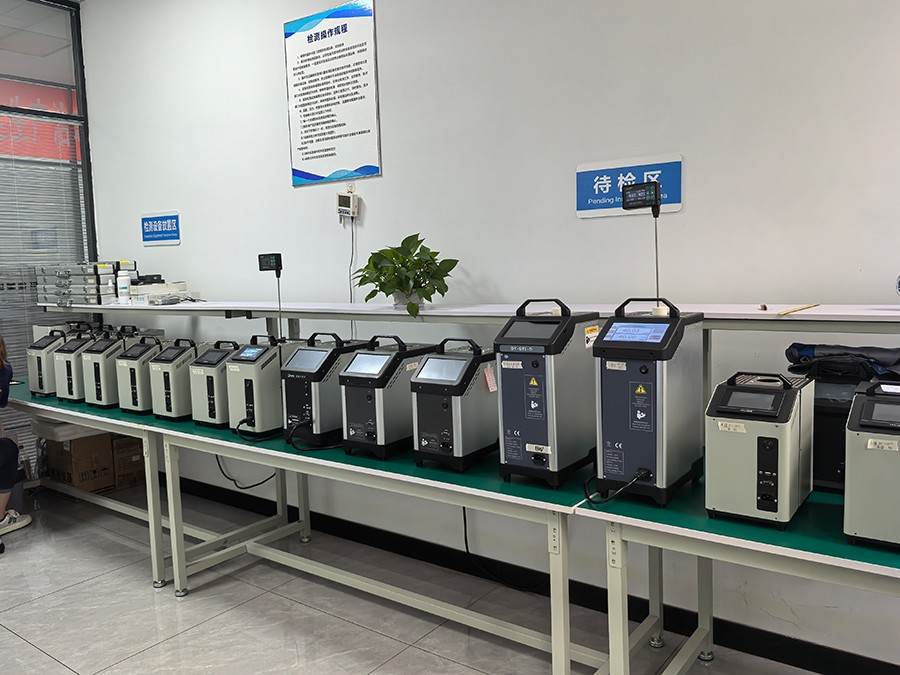 干體爐能夠提供一個(gè)穩(wěn)定、均勻的、準(zhǔn)確的溫度環(huán)境(溫場(chǎng)),提供了類似于恒溫槽(液浴槽)的性能,但是干體爐卻攜帶方便,不需要放置液體。干體爐到達(dá)預(yù)定溫度點(diǎn)并且溫度穩(wěn)定時(shí)間比恒溫槽快5到10倍,這樣可以大大節(jié)省校準(zhǔn)人員的時(shí)間,提高溫度檢定速度。干體爐的便攜性使其能夠到現(xiàn)場(chǎng)進(jìn)行校準(zhǔn)工作,從而解決了恒溫槽在運(yùn)輸移動(dòng)上的困難。