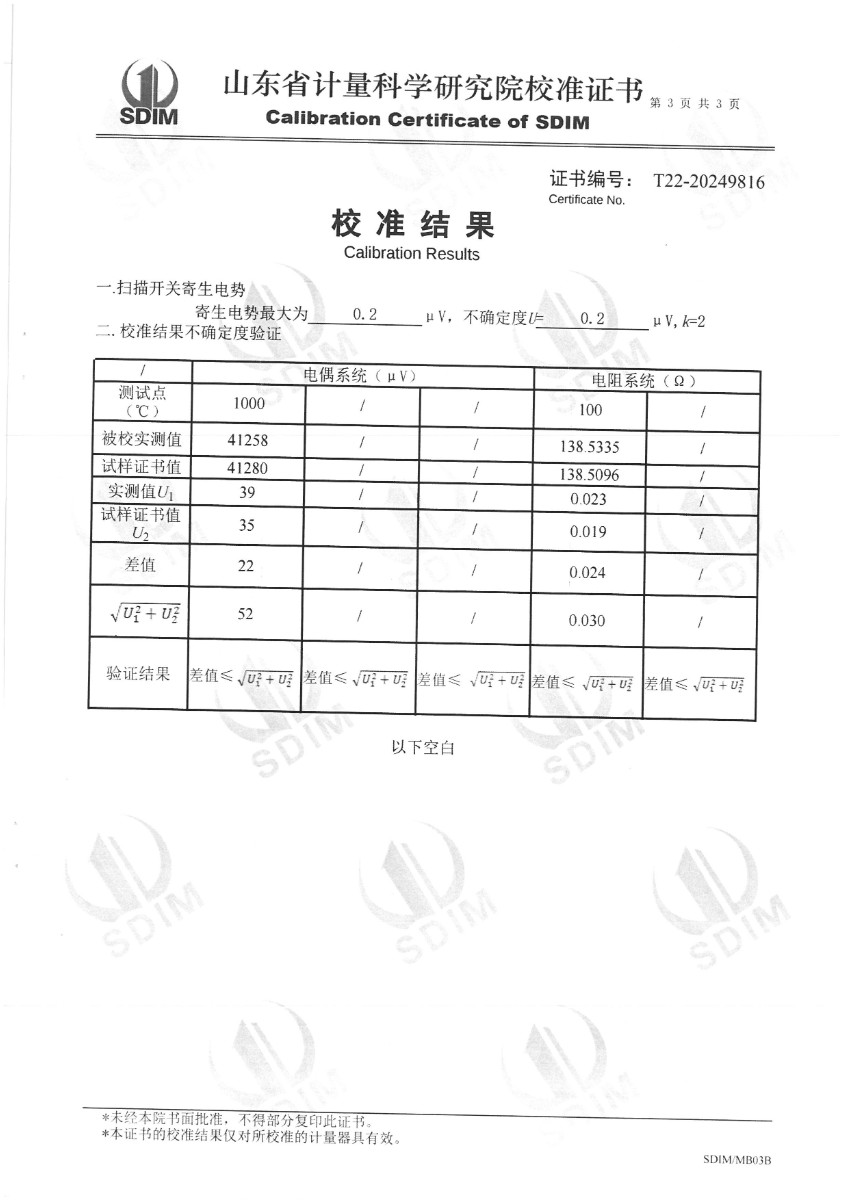 | 上一條:廉金屬熱電偶檢定爐(300~1200℃)校準(zhǔn)證書(shū) | 下一條:便攜式溫濕度檢定箱(-10-60℃)校準(zhǔn)證書(shū) |