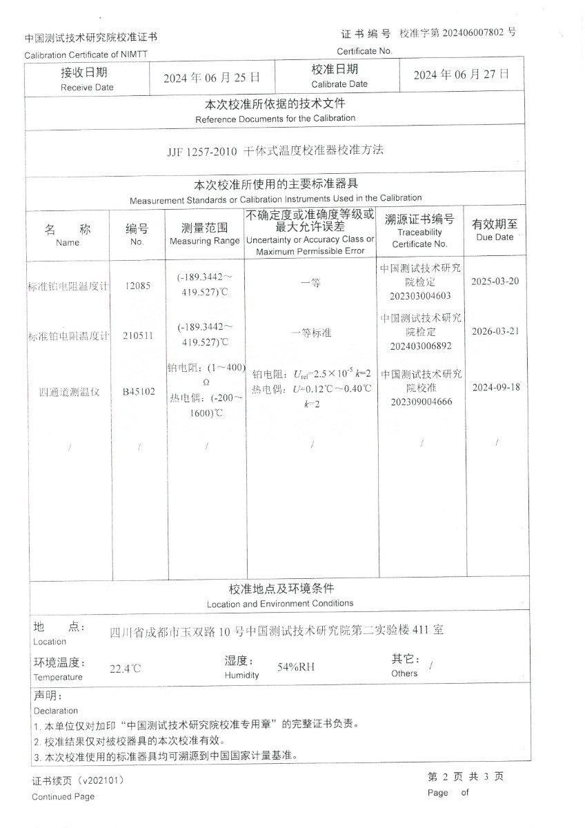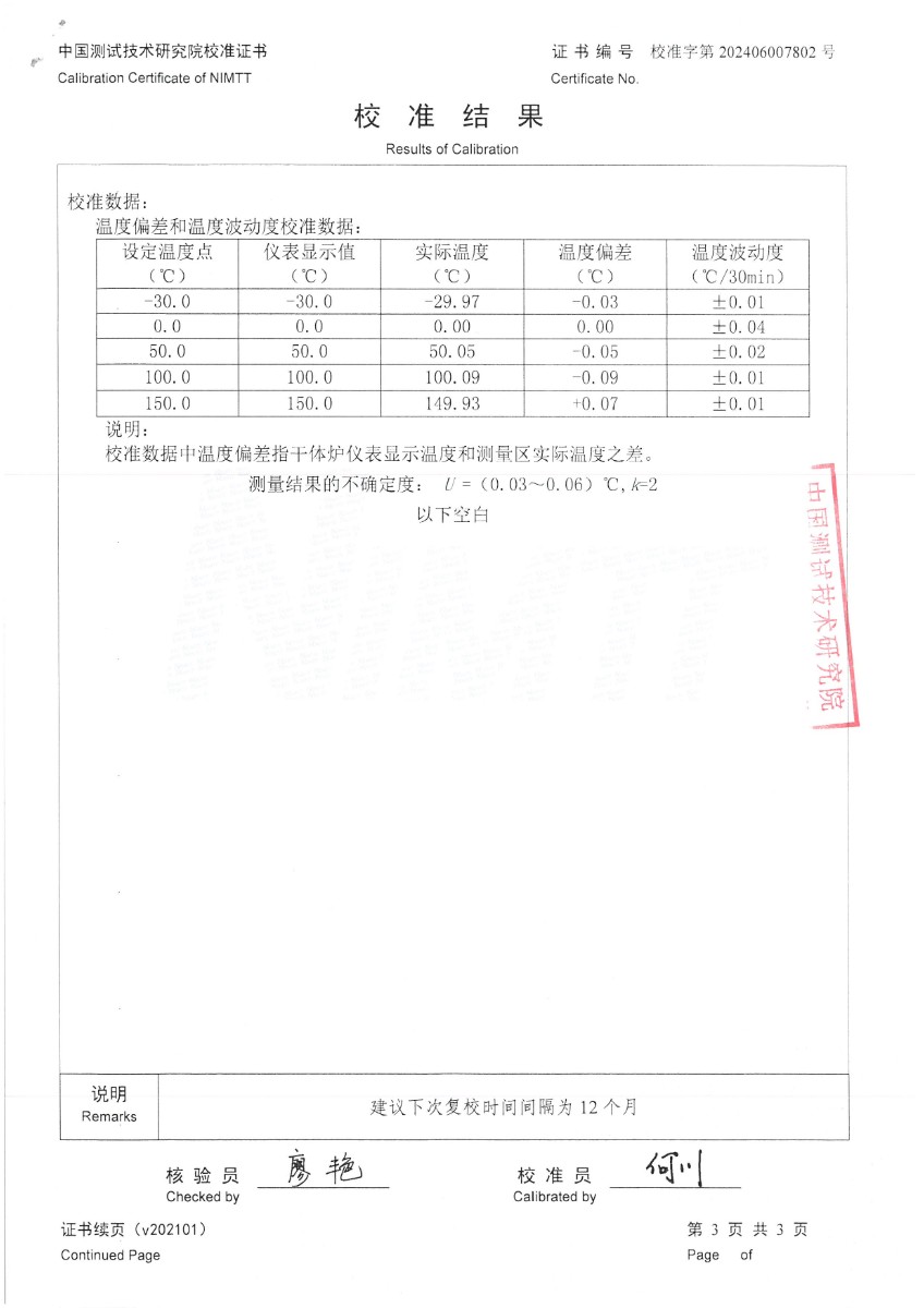 | 上一條:補(bǔ)償導(dǎo)線S分度檢測報(bào)告 | 下一條:便攜式干體爐(-30-150℃)校準(zhǔn)證書 |