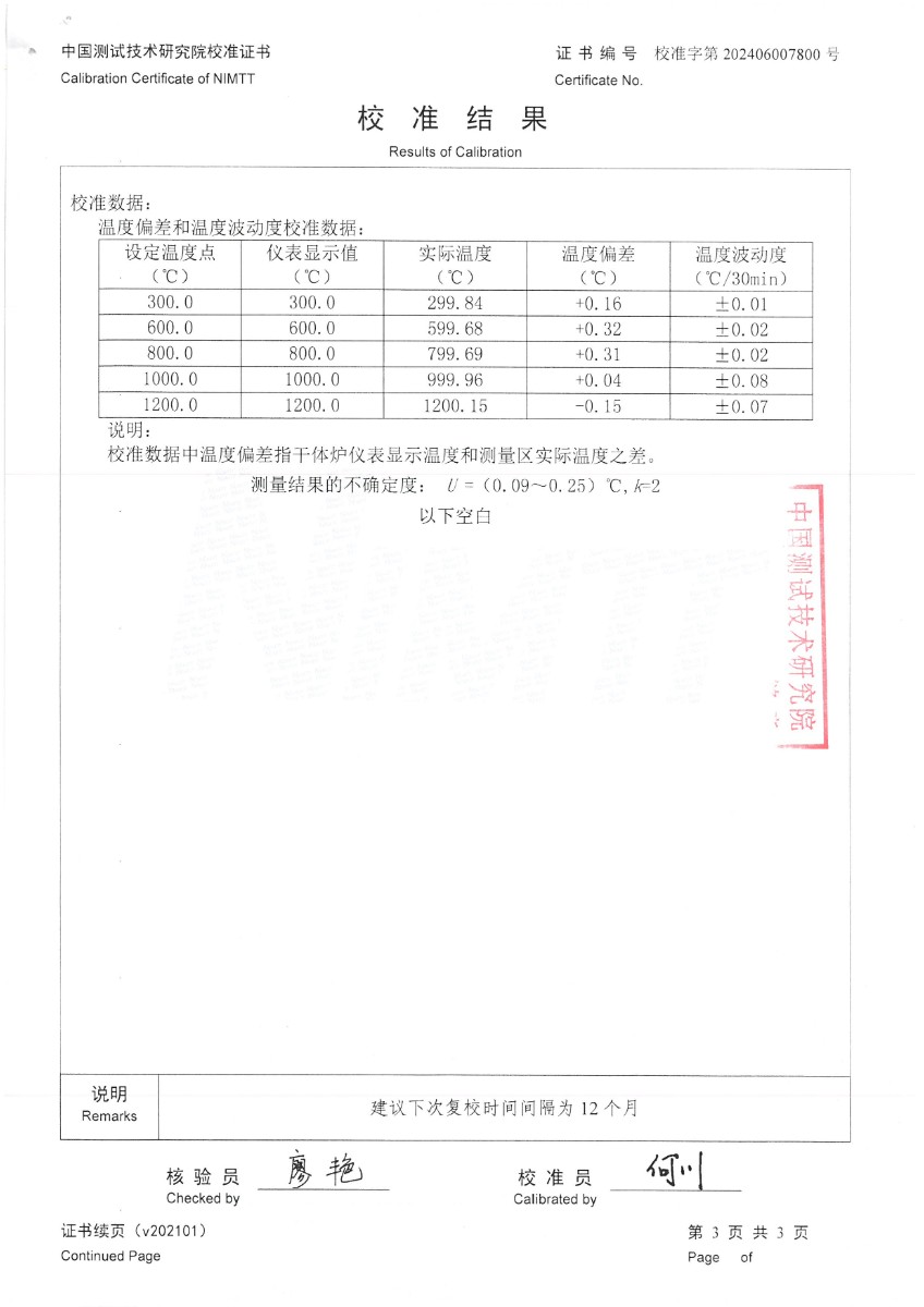 | 上一條:低溫干體爐(-30~150℃)校準(zhǔn)證書(shū) | 下一條:便攜式干體爐(-30-150℃)校準(zhǔn)證書(shū) |