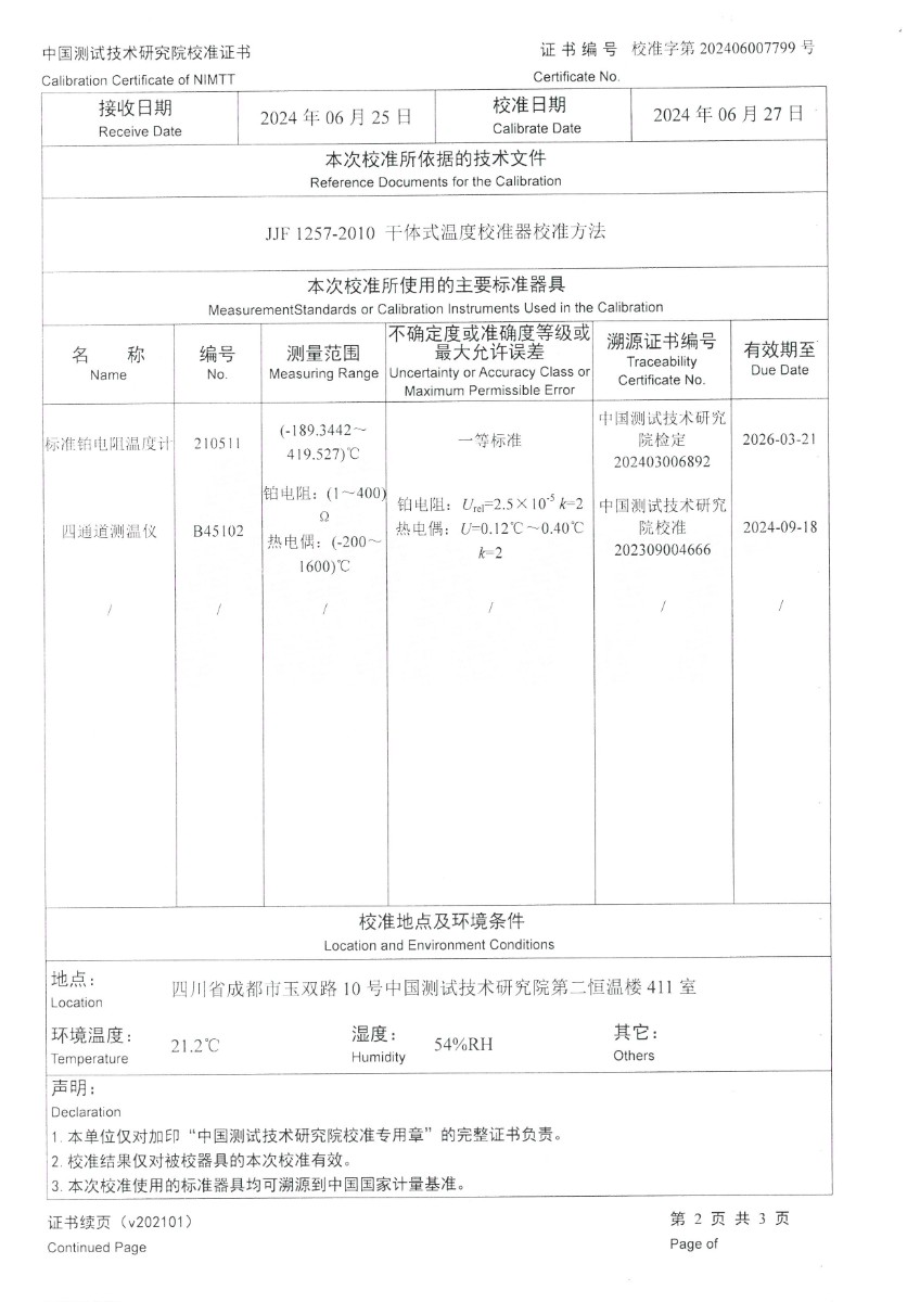 上一條:高溫干體爐(300~1200℃)校準證書下一條:便攜式干體爐(-30-150℃)校準證書