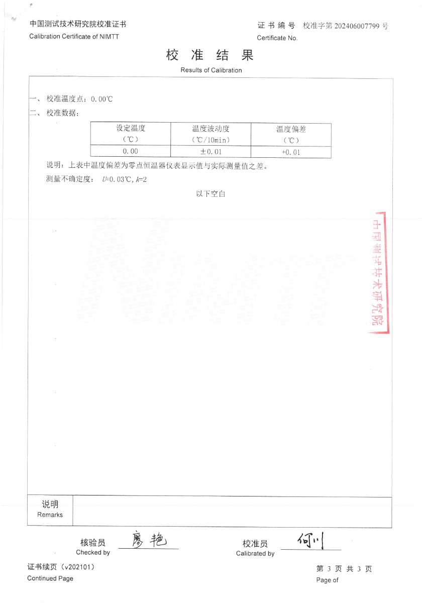 零點恒溫器校準證書 2024-7-1 本文被閱讀 5843 次