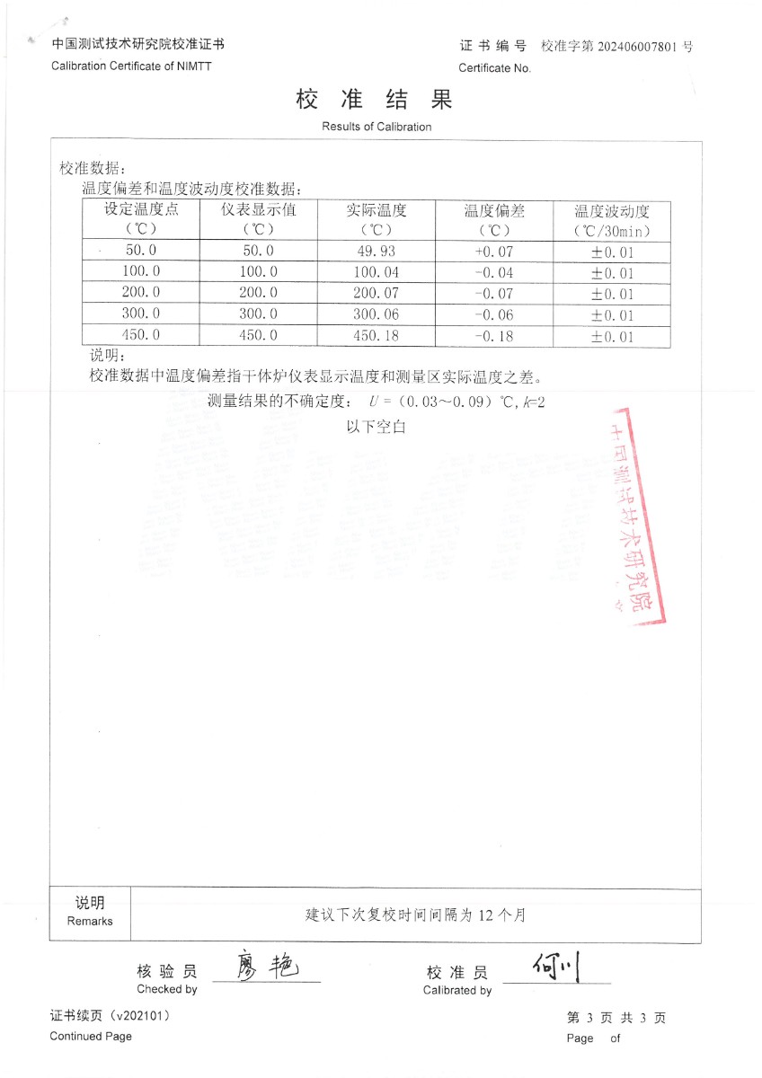 | 上一條:零點(diǎn)恒溫器校準(zhǔn)證書(shū) | 下一條:便攜式干體爐(-30-150℃)校準(zhǔn)證書(shū) |