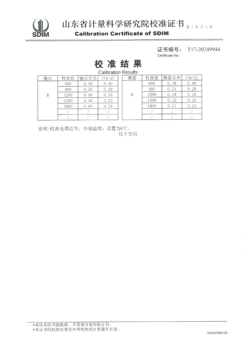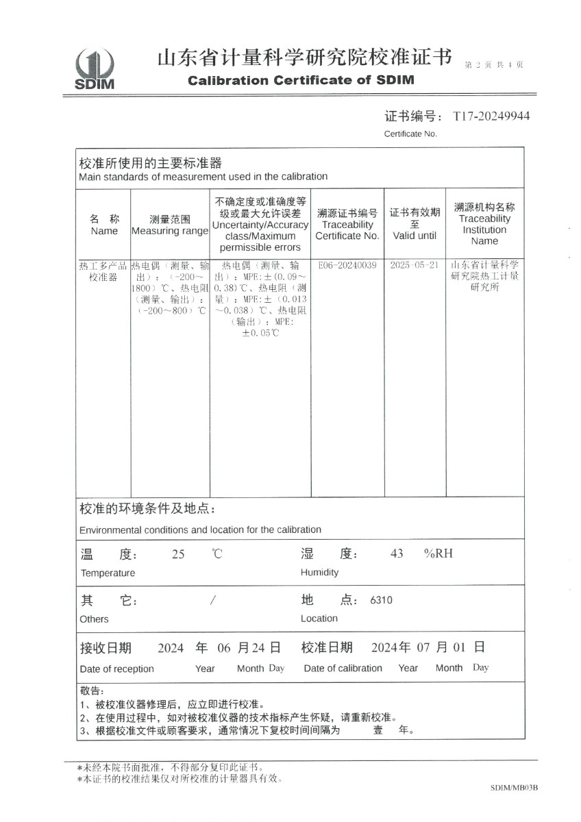 上一條:水三相點(diǎn)瓶凍制保存裝置(-20~95℃)校準(zhǔn)證書 | 下一條:便攜式干體爐(-30-150℃)校準(zhǔn)證書 |