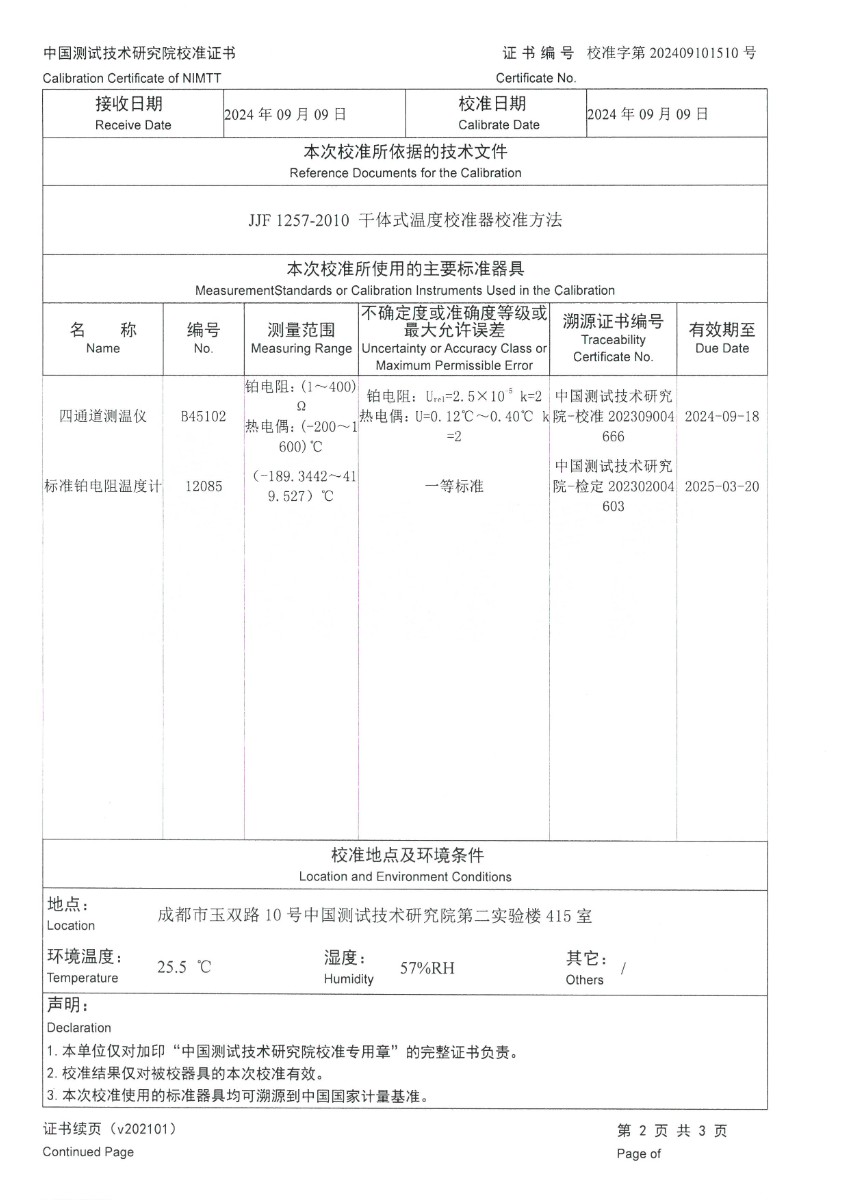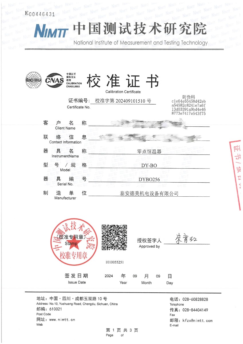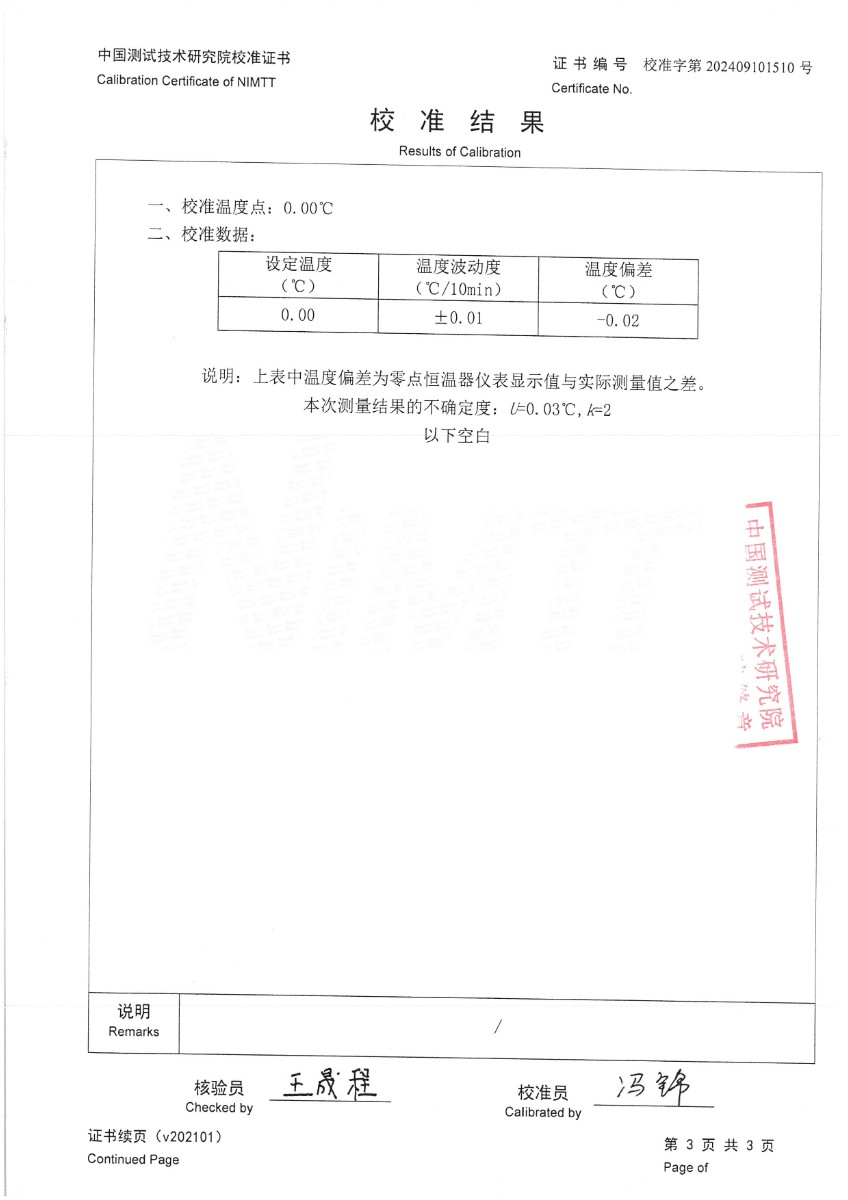 零點恒溫器校準證書 2024-9-11 本文被閱讀 6330 次