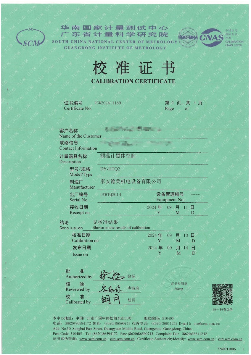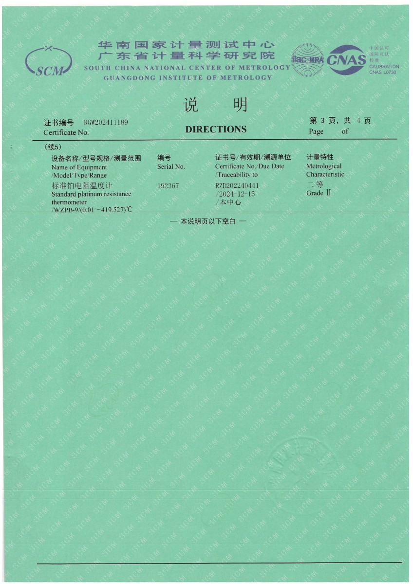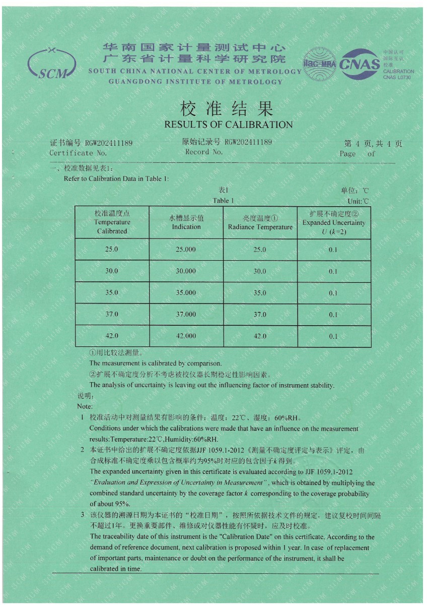 上一條:體溫計(jì)專(zhuān)用黑體恒溫槽(-20~100℃)校準(zhǔn)證書(shū) | 下一條:超低溫面源黑體爐(-40-80℃)校準(zhǔn)證書(shū) |