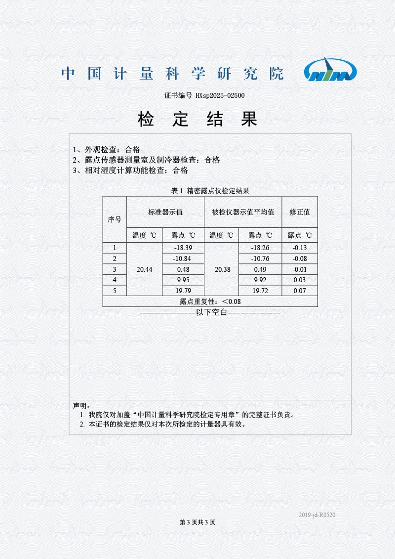 露點儀檢定證書