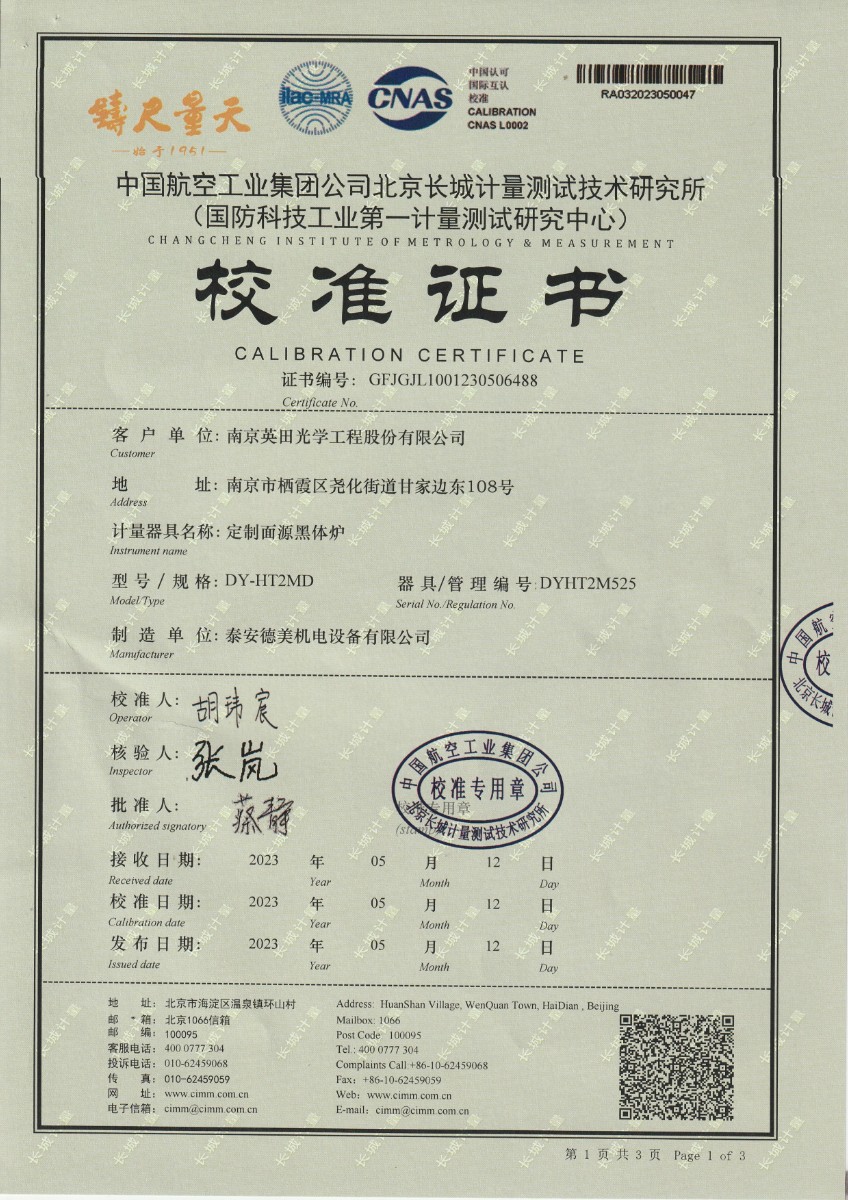 | 上一條:魯南中聯(lián)水泥有限公司 干體式溫度校準(zhǔn)器 校準(zhǔn)證書 | 下一條:便攜式干體爐(-30-150℃)校準(zhǔn)證書 |