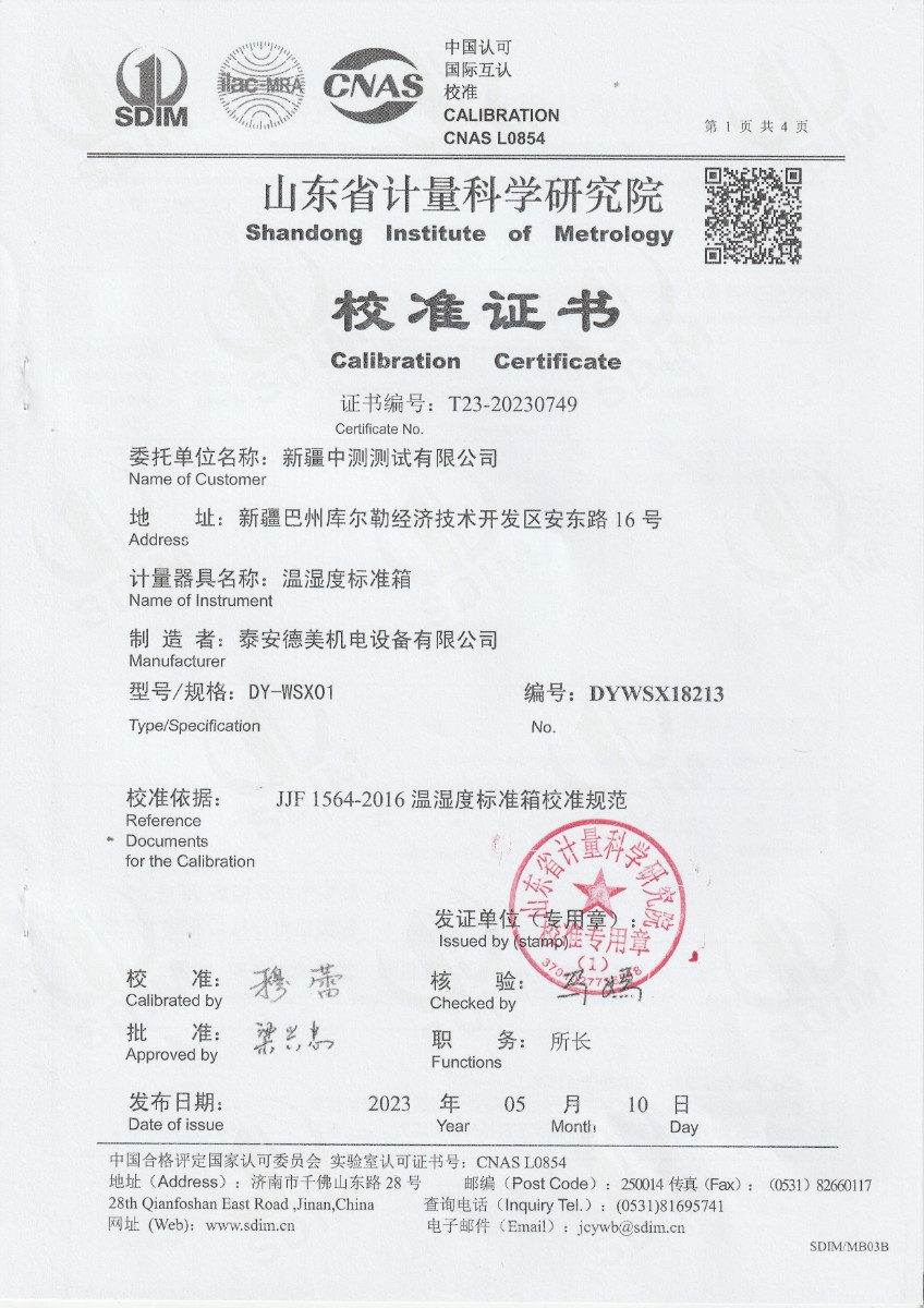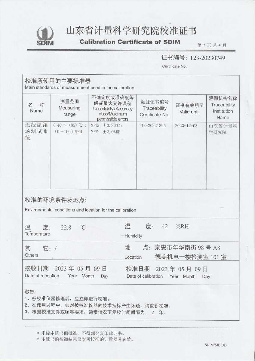 | 上一條:越南晶科能源實業(yè)有限責任公司 溫濕度標準箱 校準證書 | 下一條:便攜式干體爐(-30-150℃)校準證書 |