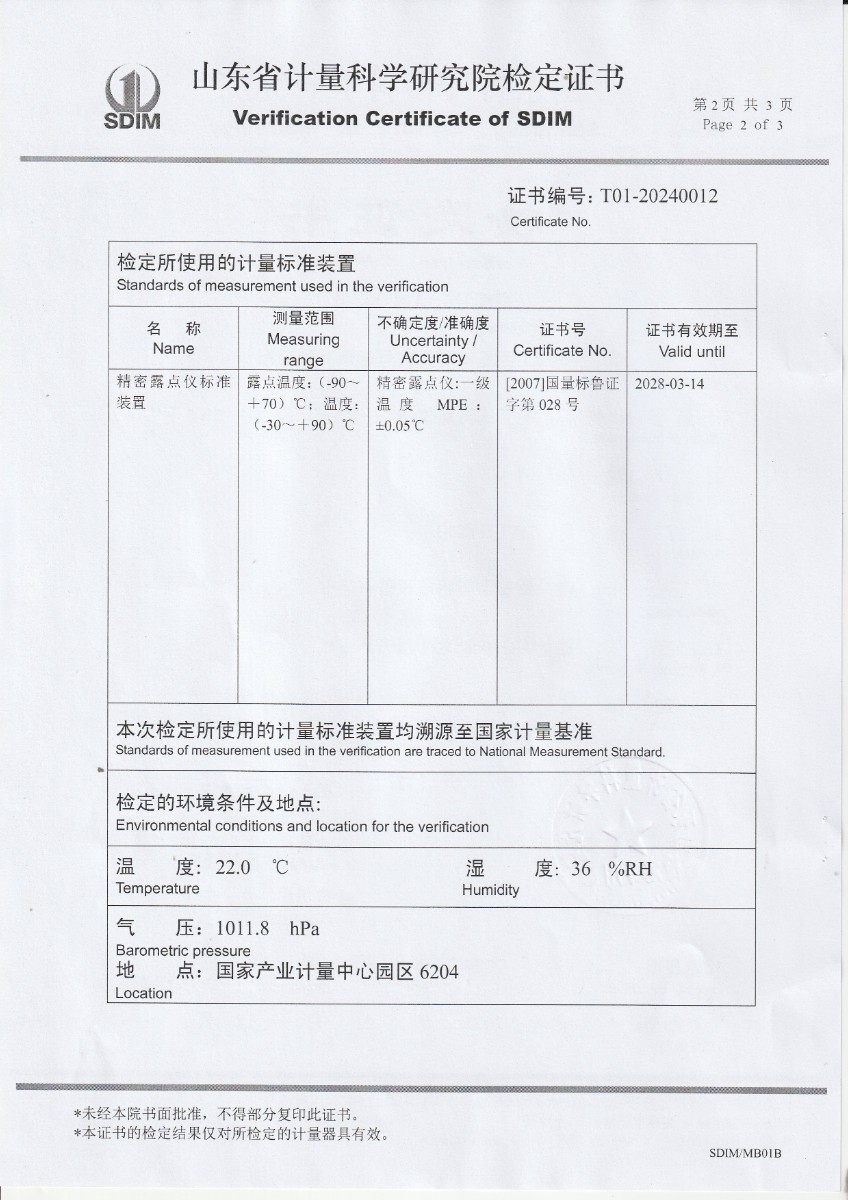 冷鏡式露點(diǎn)儀檢定證書 2024-1-31 本文被閱讀 8344 次
