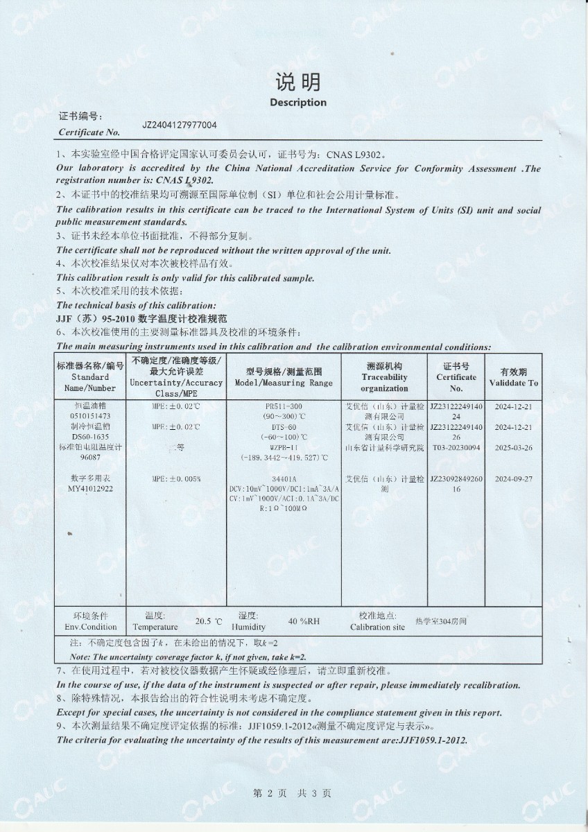 上一條:便攜式恒溫油槽校準(zhǔn)證書(shū) | 下一條:超低溫面源黑體爐(-40-80℃)校準(zhǔn)證書(shū) |