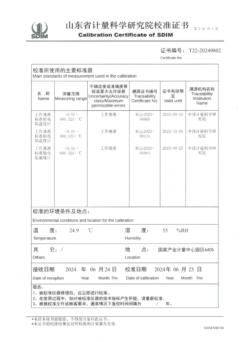上一條:高精度數(shù)字溫度計(jì)(30~150℃)校準(zhǔn)證書 | 下一條:便攜式干體爐(-30-150℃)校準(zhǔn)證書 |