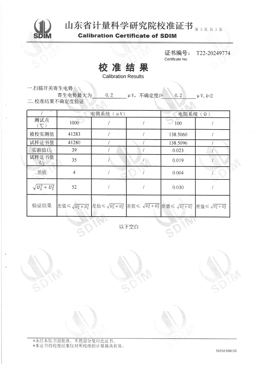 上一條:中溫干體爐296(50~650℃)校準(zhǔn)證書 | 下一條:便攜式干體爐(-30-150℃)校準(zhǔn)證書 |