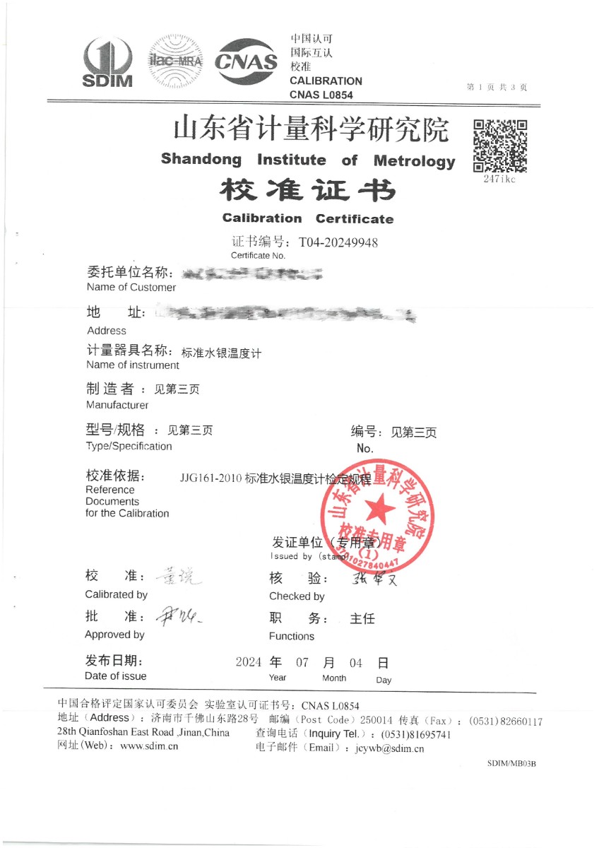 上一條:溫濕度檢定箱(-20~70℃)校準(zhǔn)證書 | 下一條:超低溫面源黑體爐(-40-80℃)校準(zhǔn)證書 |