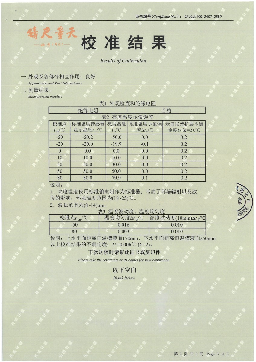 低溫浴式(-50~80℃)校準(zhǔn)證書 2024-7-29 本文被閱讀 6782 次