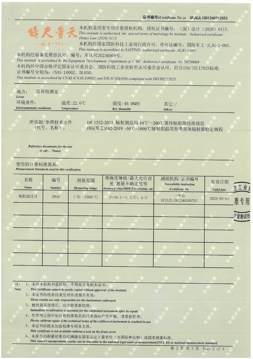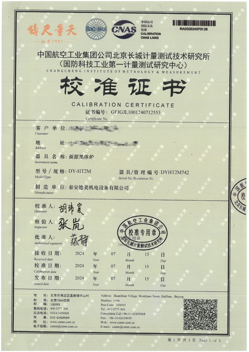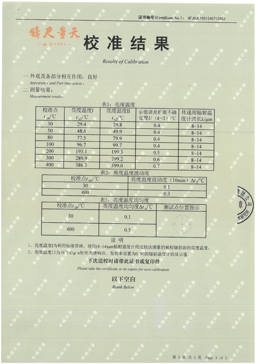 面源黑體爐(室溫+5℃~400℃)校準(zhǔn)證書 2024-7-29 本文被閱讀 7136 次