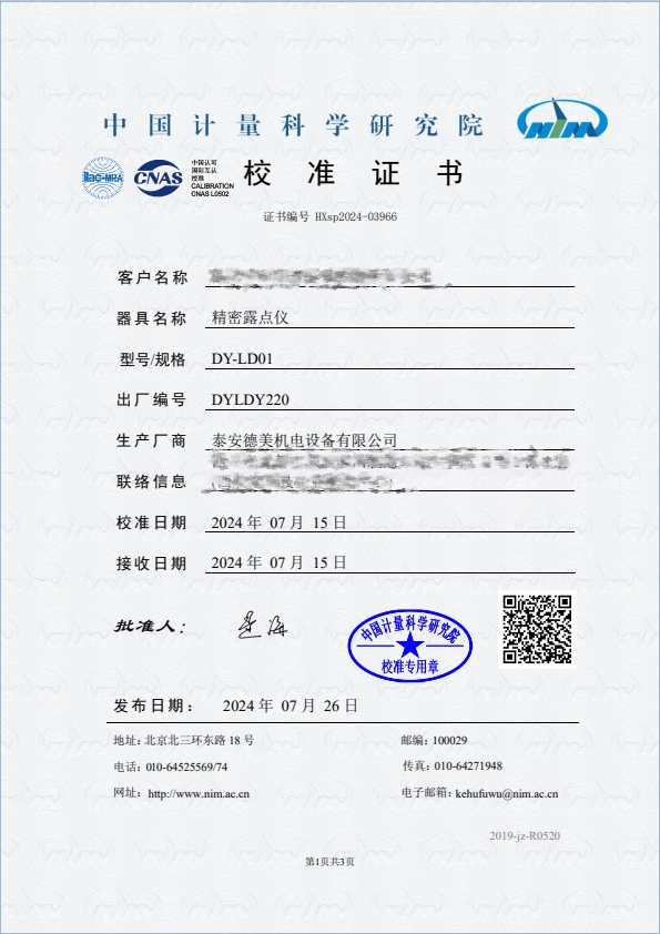 露點(diǎn)儀校準(zhǔn)證書 2024-7-29 本文被閱讀 7437 次