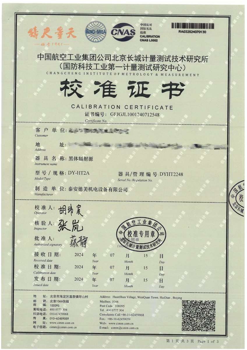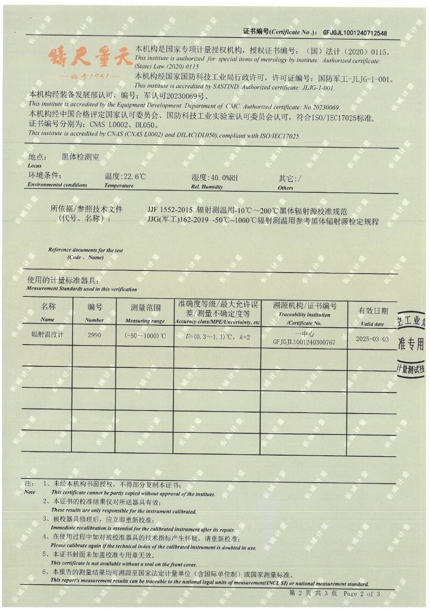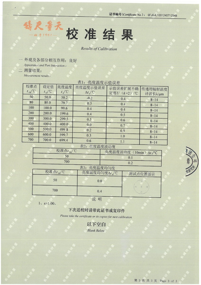 黑體(50~700℃)校準(zhǔn)證書 2024-7-29 本文被閱讀 9296 次