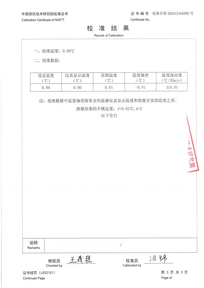 上一條:低溫浴式面源黑體爐(-50-80℃)校準(zhǔn)證書 | 下一條:超低溫面源黑體爐(-40-80℃)校準(zhǔn)證書 |